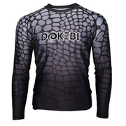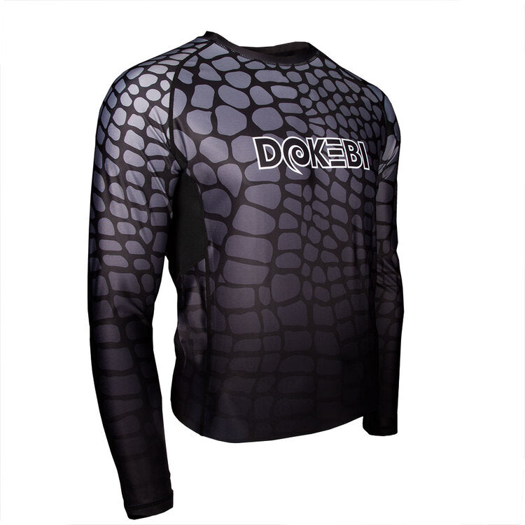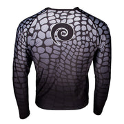 Sublimated on a long sleeve compression top in a cool gray colorway. Featuring integrated mesh underarm panels for greater ventilation, air flow, and comfort. Constructed with strong flatlock stitching.