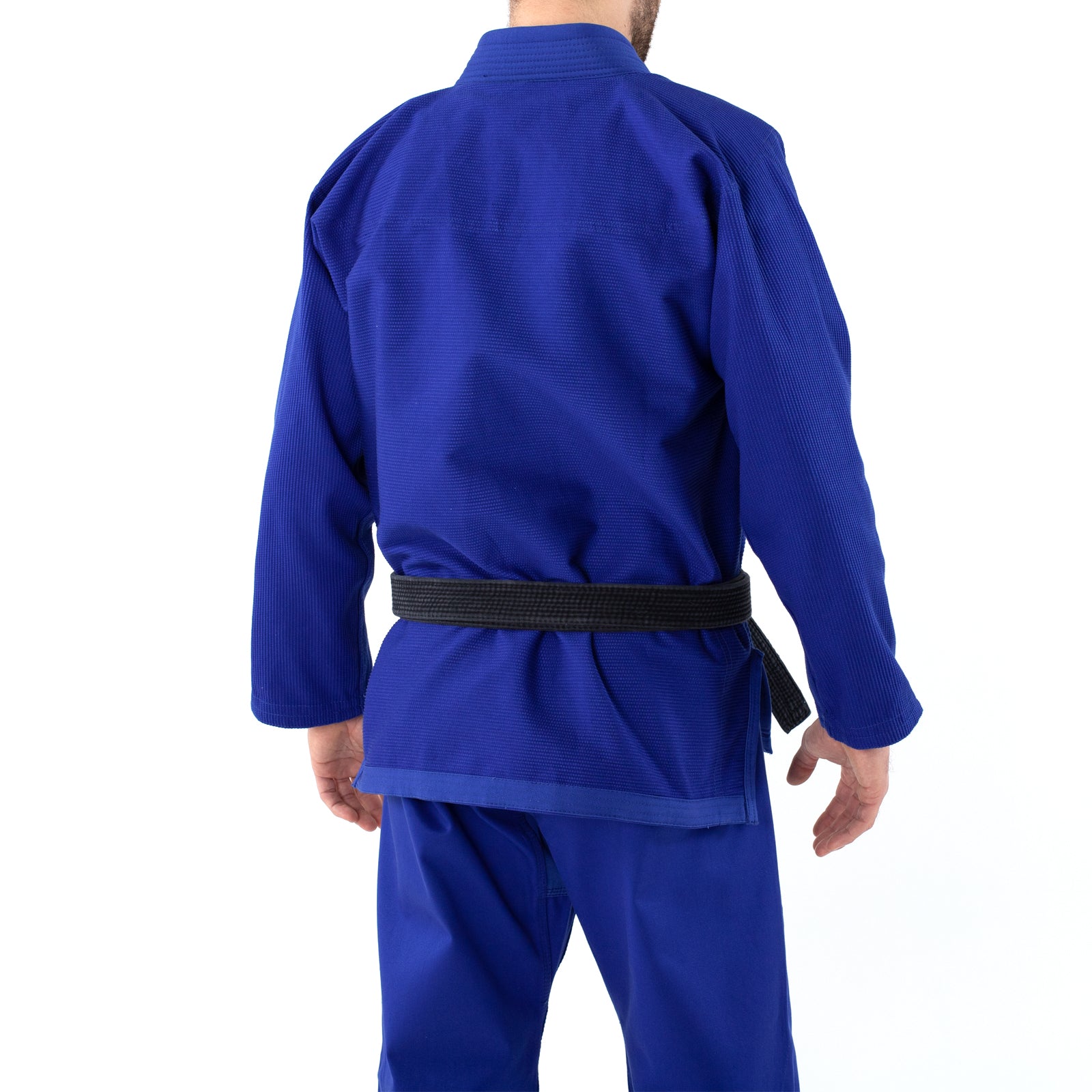Standard Issue, part two! Slightly lightly fabrics, but with some upgrades. Thoroughly preshrunk and washed, meaning shrinkage will be on par with other higher-end Jiu Jitsu gis from 93brand. The new weaves are a touch lighter on the scales, but more tightly woven and significantly more resistant to shrinkage... plus the extended knee panel and doubled up skirt paneling will ensure your Standard Issue is still plenty ready for hard sessions. And, of course, 93brand kept it all crispy clean: blue fabrics and blue stitching