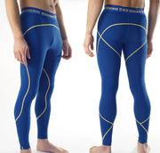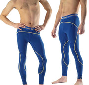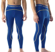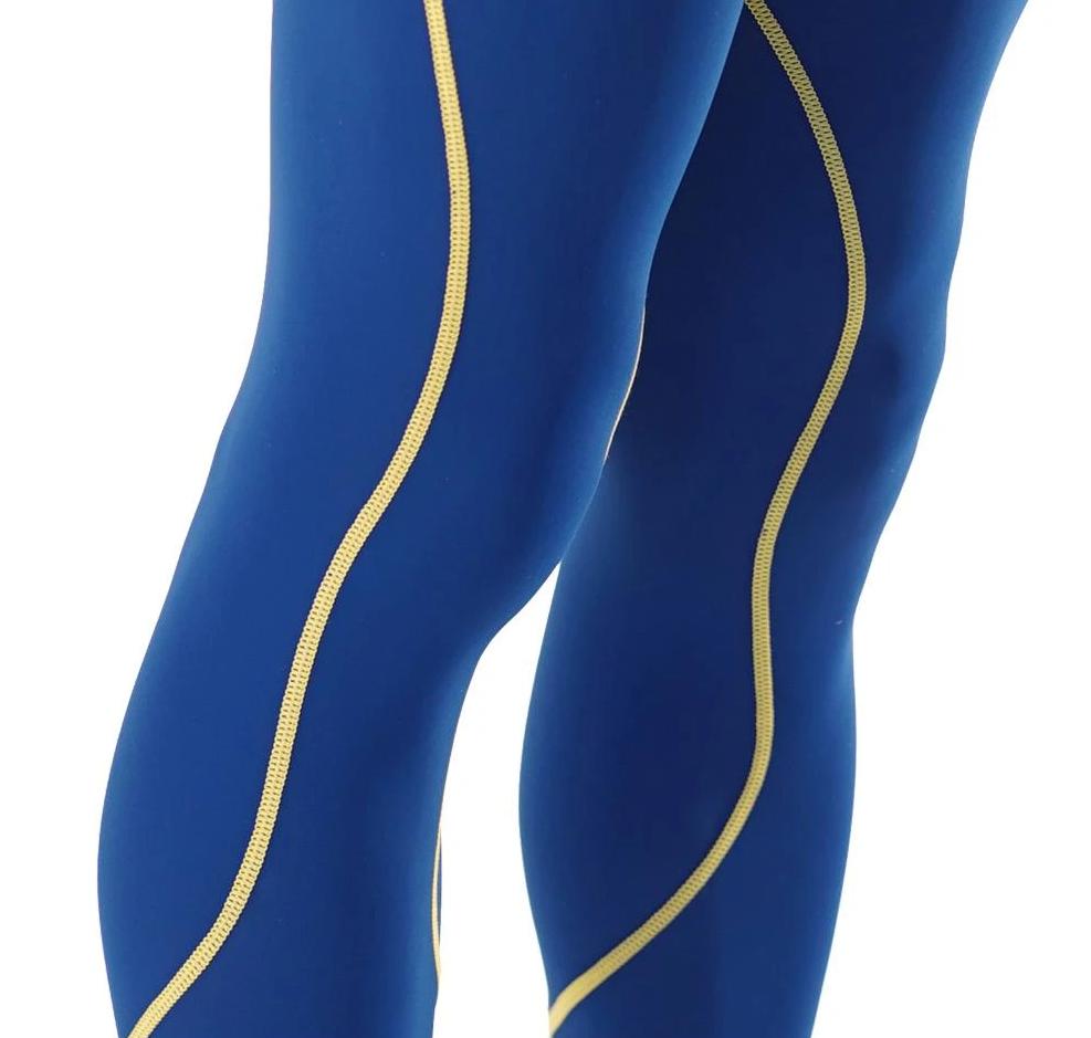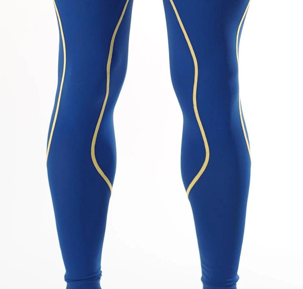 Using a blended fabric (88% nylon/12% spandex) to achieve a flexible fit throughout the body, with a mesh crotch panel to add ventilation. Bright flatlock stitching offers a nice contrast against the deep blue finish, securely keeping each panel together for a form-fitting compression fit.