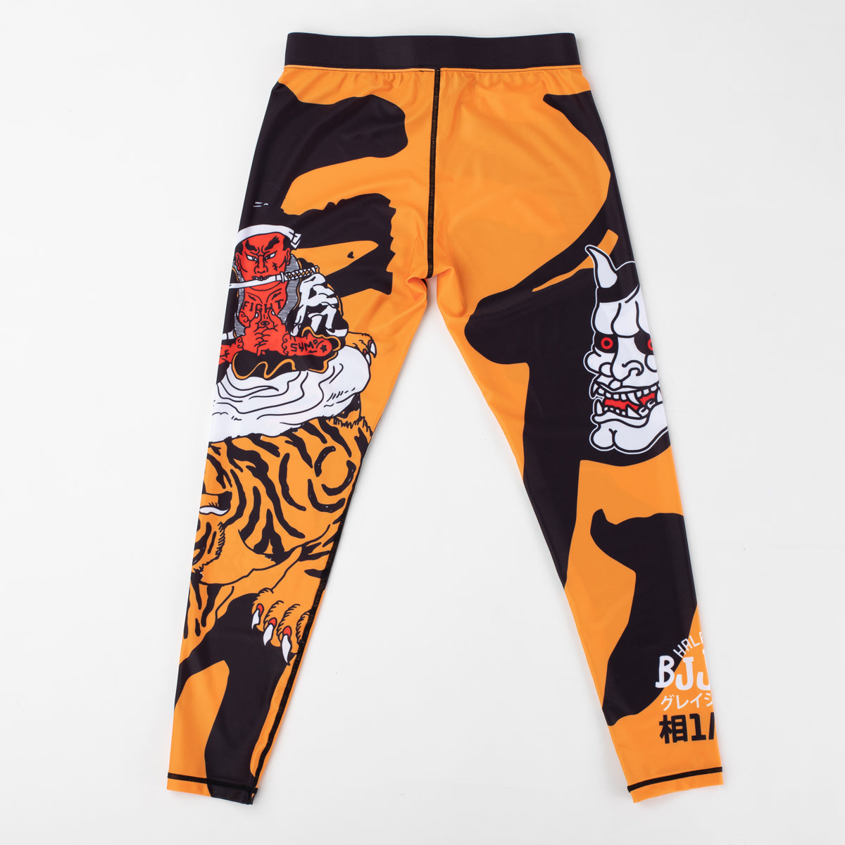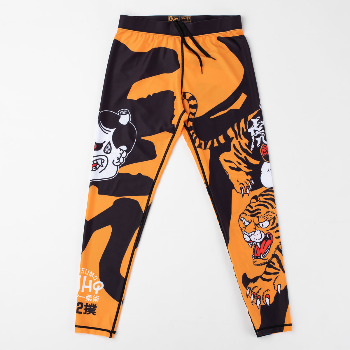 The "Year of the Tiger" spats feature exclusive designs from Half Sumo! A limited edition collab between Half Sumo and BJJHQ. Featuring sublimated graphics that will never fade. Built from a moisture-wicking poly/spandex blend. Includes an internal drawstring to fine tune the fit.