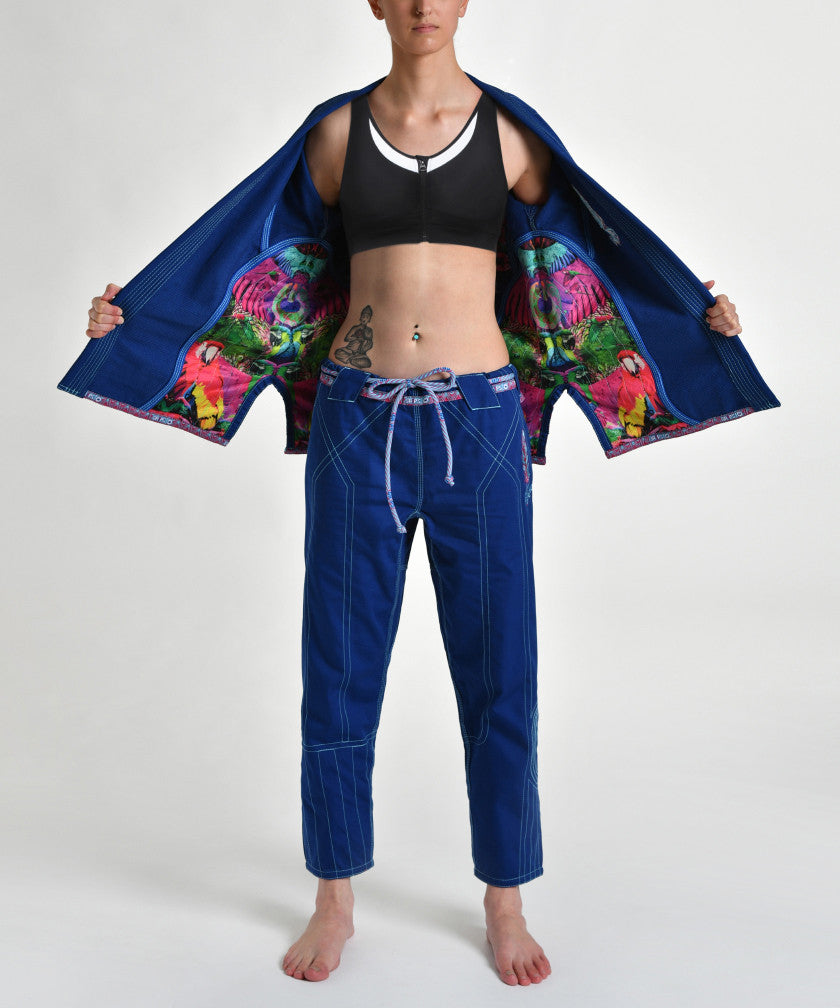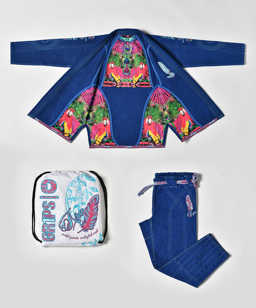 The Grips Ara gi was inspired by the majestic and colourful Ara parrot that lives in the Amazon forest. This unique bird is one of the symbols of Brazil, the home of Brazilian jiu-jitsu. The shaped fit is designed to guarantee maximum freedom of movement during training. This gi is built to last thanks to the triple seam and double reinforced layers in key stress areas. The pre-shrunk material guarantees a perfect fit. BE WILD, BE BEAUTIFUL.