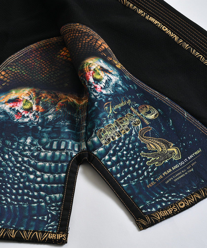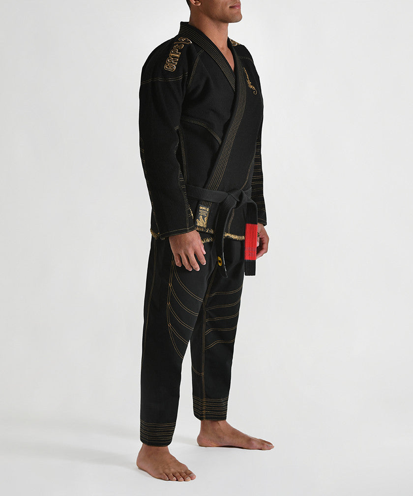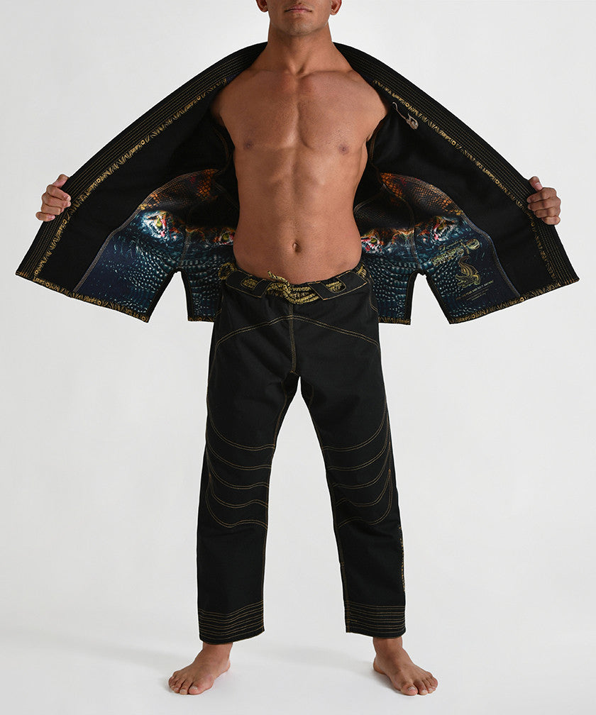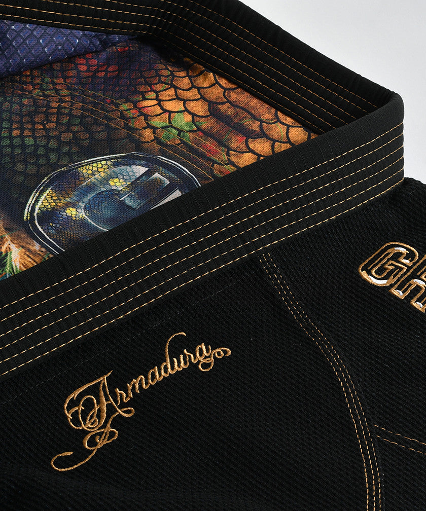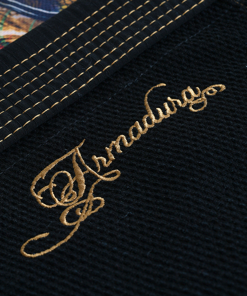 BJJ GI Armadura is the world’s first Brazilian jiu-jitsu kimono able to precisely fit the shape of your body. It is characterised by sublimation-printed mesh padding on the shoulders and crotch which guarantees comfort by preventing friction between the fabric and the skin. This gi is guaranteed to last thanks to the triple seam and double reinforced layers at key stress points.   The pre-shrunk material guarantees a perfect fit. The knee padding and elastic waist provide protection and mobility during training. The BJJ Armadura kimono is a pioneer in ergonomics, combining unrivalled elegance and top performance. This product meets the requirements for IBJJF competitions.
