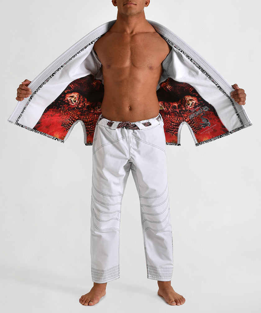 BJJ GI Armadura is the world’s first Brazilian jiu-jitsu kimono able to precisely fit the shape of your body. It is characterised by sublimation-printed mesh padding on the shoulders and crotch which guarantees comfort by preventing friction between the fabric and the skin. This gi is guaranteed to last thanks to the triple seam and double reinforced layers at key stress points. The pre-shrunk material guarantees a perfect fit. The knee padding and elastic waist provide protection and mobility during training. The BJJ Armadura kimono is a pioneer in ergonomics, combining unrivalled elegance and top performance. This product meets the requirements for IBJJF competitions.
