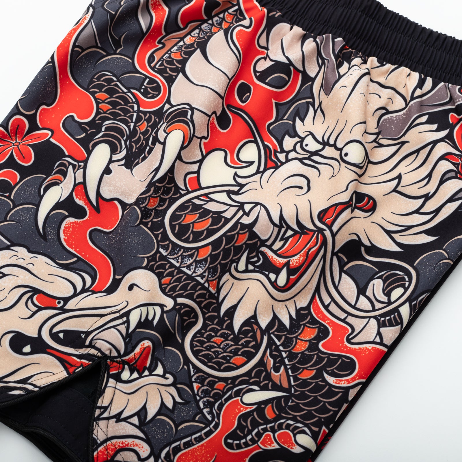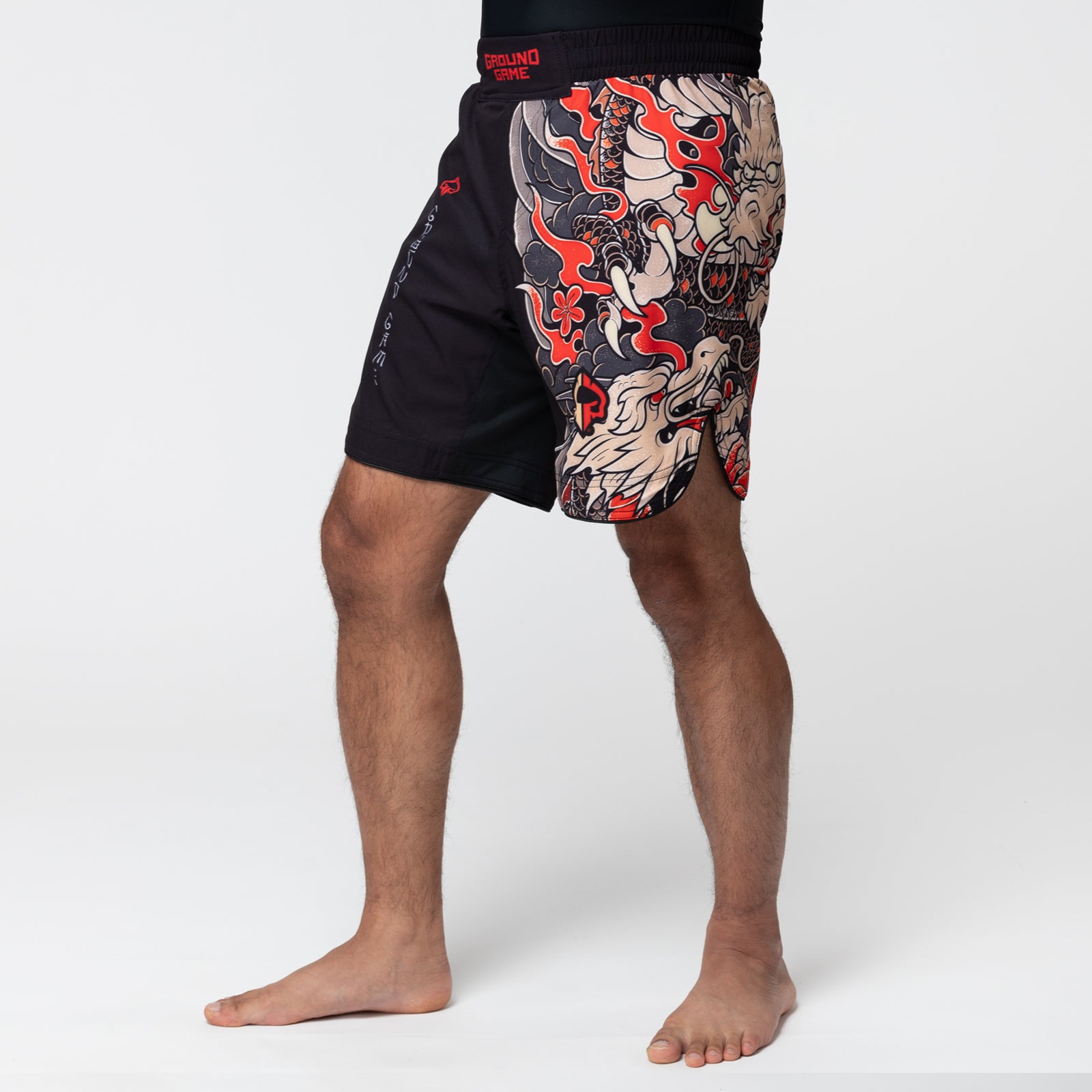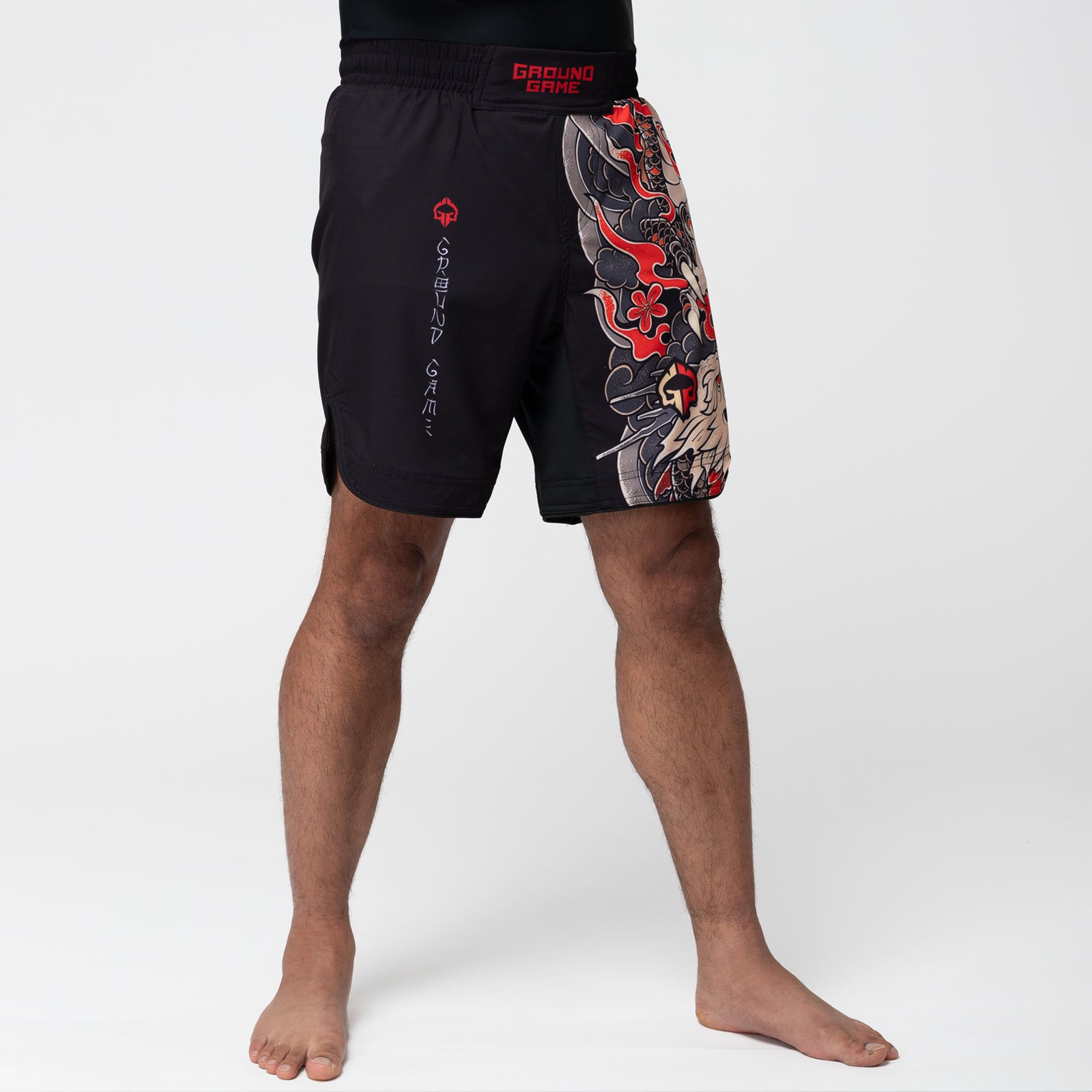 Ground Game's top selling Yokai 2.0 design is now on a comfy pair of nogi shorts. They’re constructed with a lightweight, durable material and have a beautiful sublimated graphic across the entire left leg. With an elastic waistband (no Velcro closure), above-the-knee cut, and an internal drawstring for a secure fit, they offer all the right features.