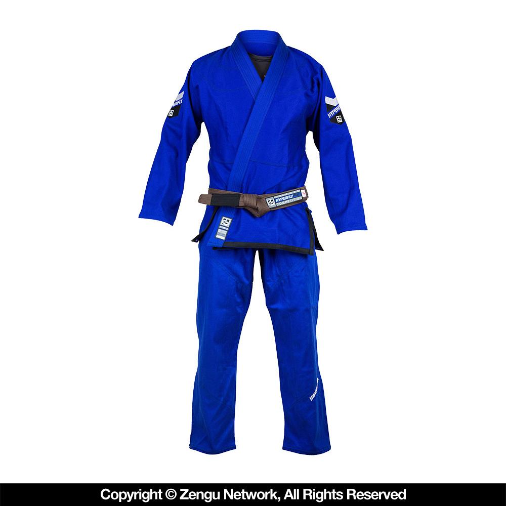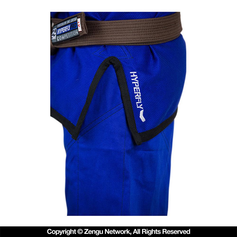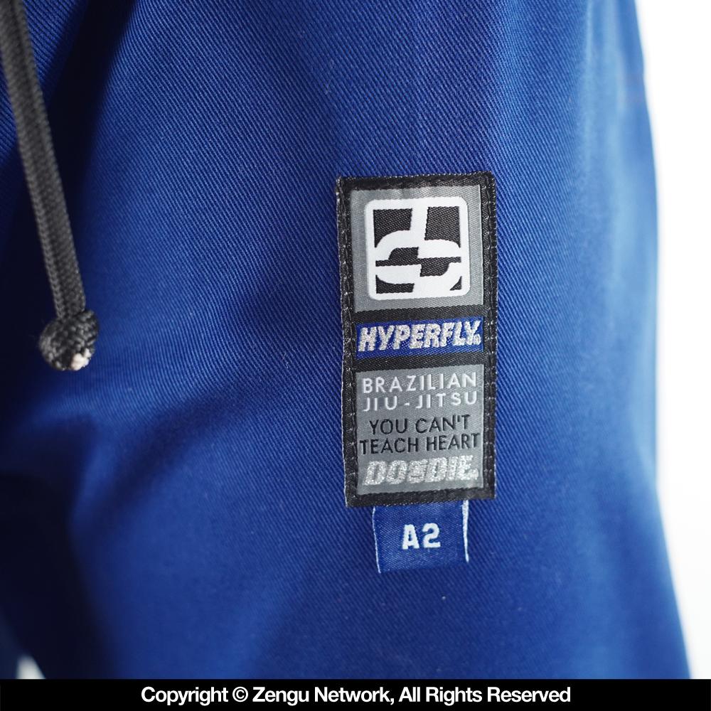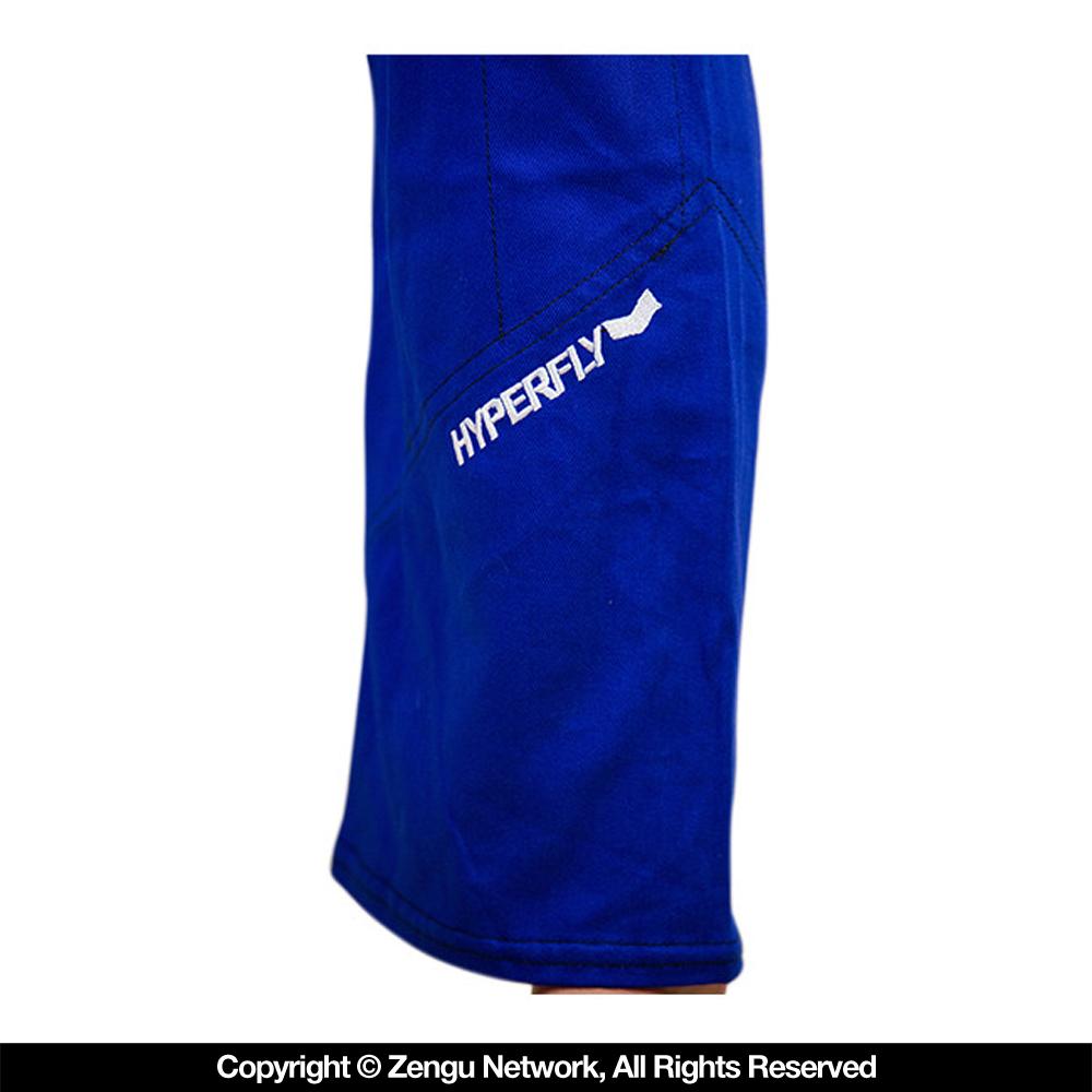 The Hyperfly gi features the classic Hyperfly logos and branding with the usual reliable fabrics. Also featured are tweaked trim and accent elements, angular knee reinforcement panels, and small vertical "Hyperfly" embroideries.