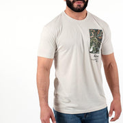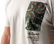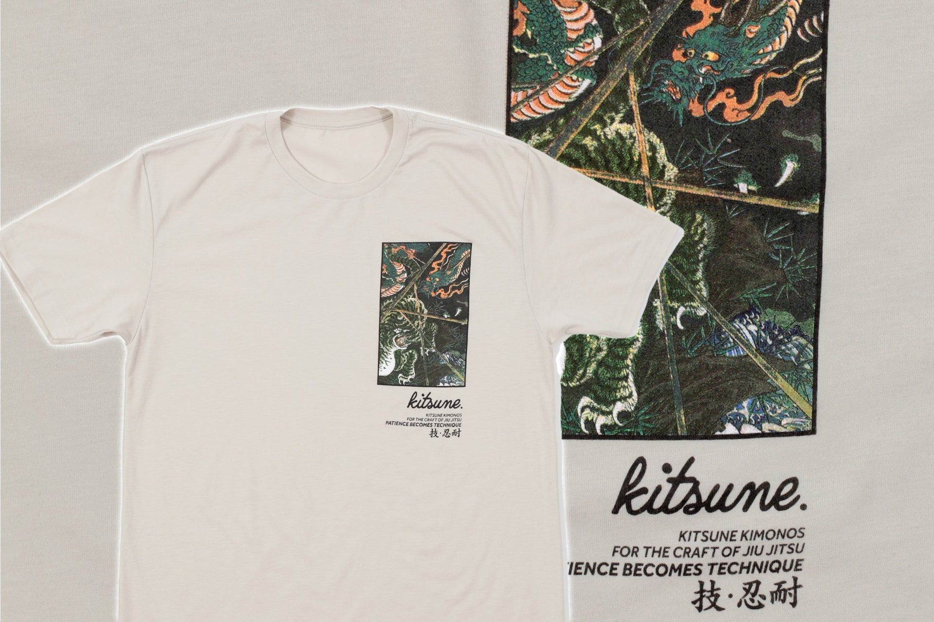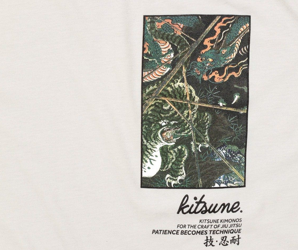 This Kitsune ukiyo-e inspired tee is printed in full-color here in the US on a breathable and comfy sueded jersey cotton. The off-white fabric is primarily composed of combed cotton, blended with polyester to keep it lighter and more resilient against shrinkage.