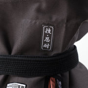 Grey on grey stitching with black trim, paired up with classic ukiyo-e artwork (fully sublimated on moisture-wicking poly mesh fabric that feels great while training / won't get stiff once hot/sweaty). Subtle metallic finish embroidery thread on the arm badges. Sturdy collar with EVA core.