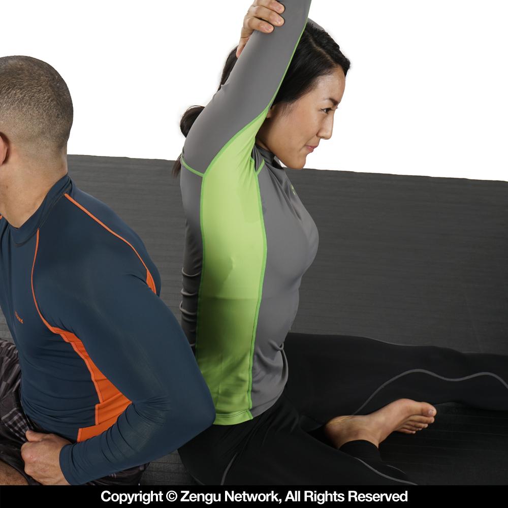 Constructed from a blended fabric (88% nylon/12% spandex) to achieve a flexible fit throughout the body. Assembled with flatlock stitching for durability and a secure form-fitting fit, using contrasting colors.
