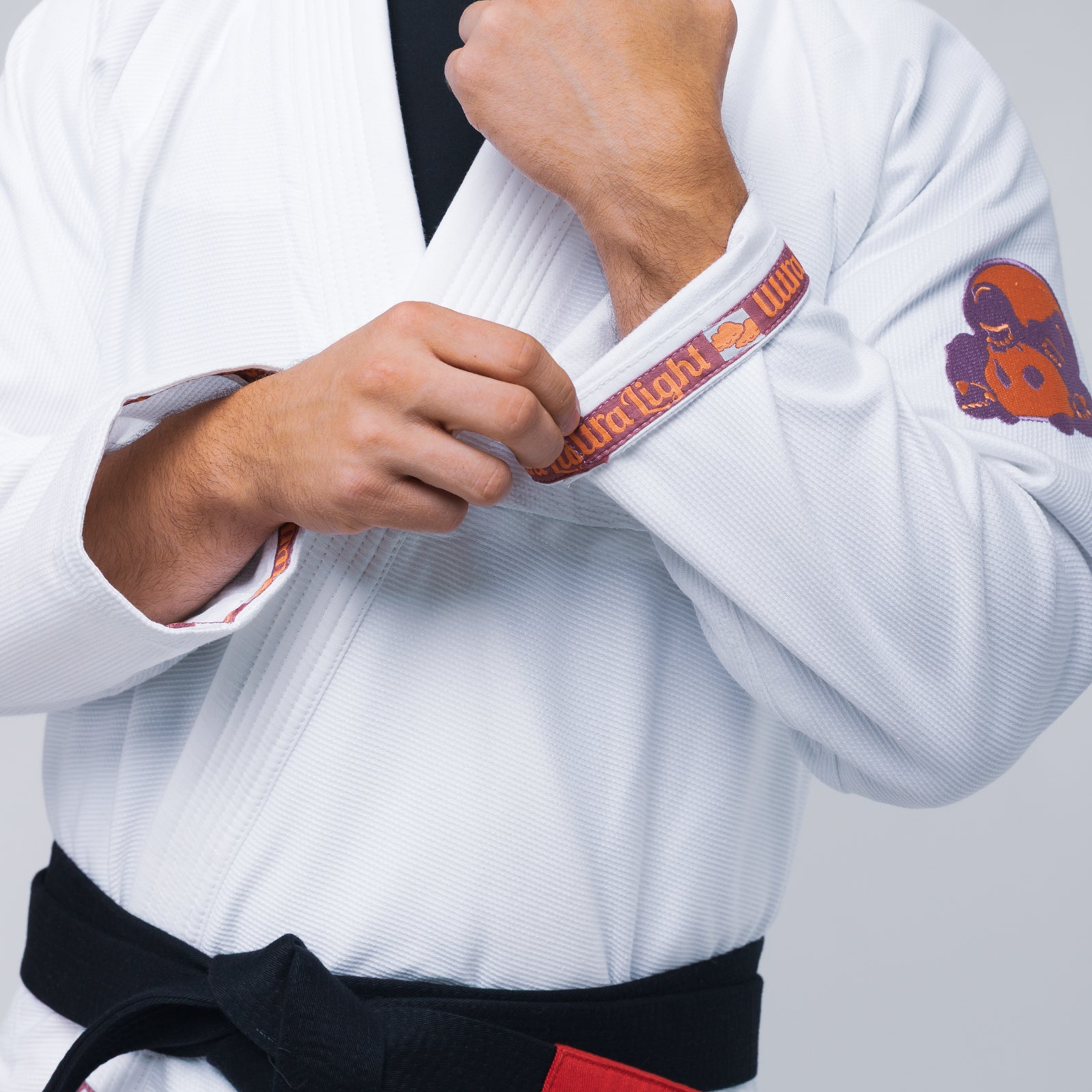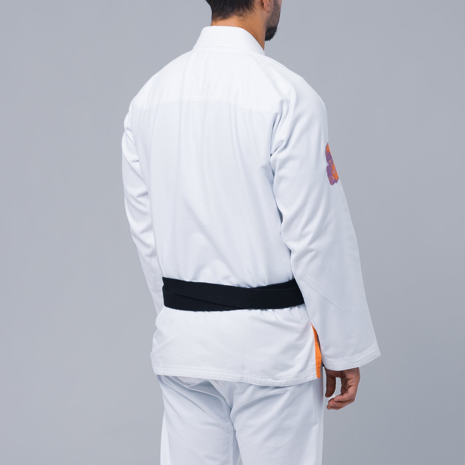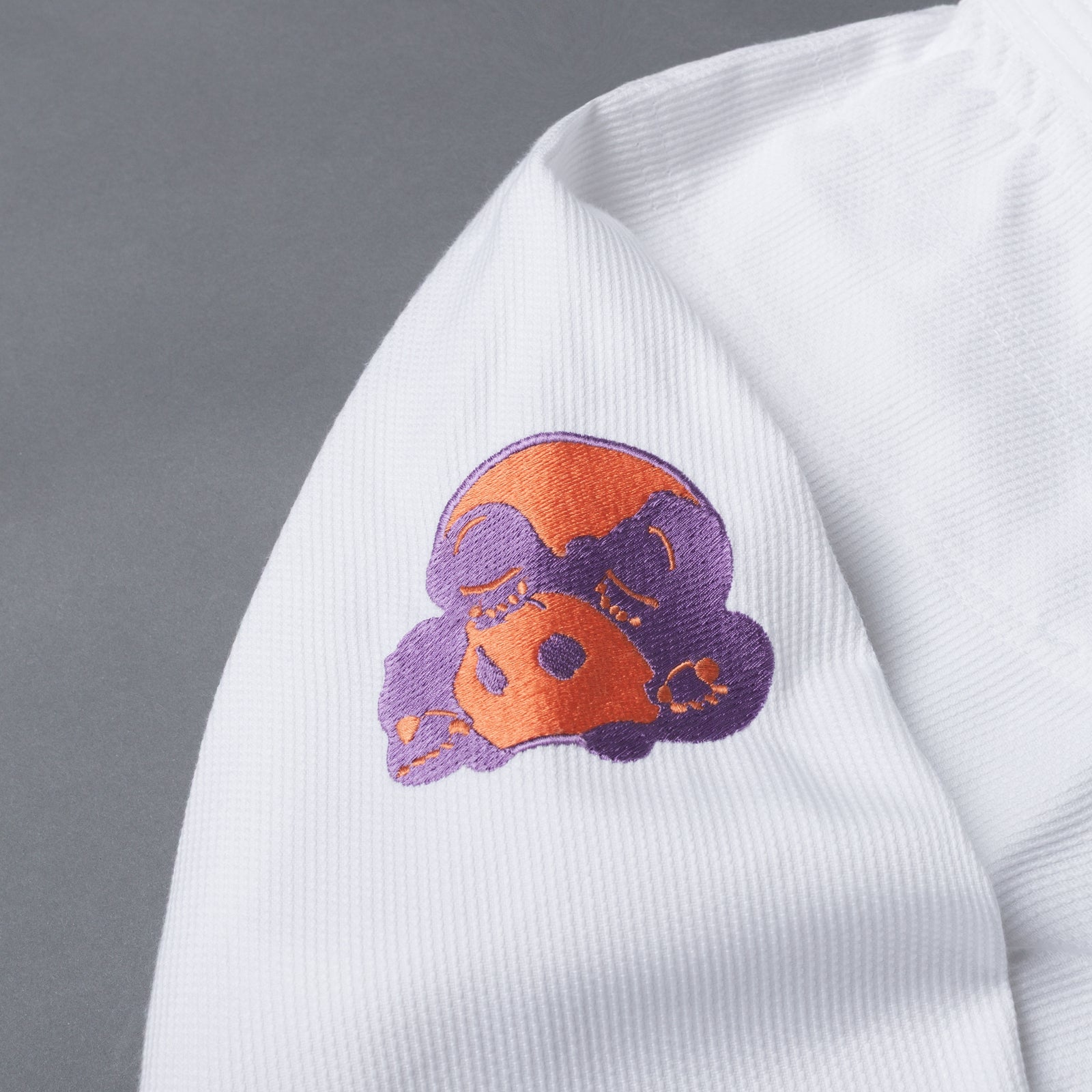 Crafted from durable 280 GSM Pearl Weave, this gi stands up to tough rolls with reinforced stitching for lasting wear. Breathable and moisture-wicking to keep you cool, with bold orange and purple accents for a playful edge.