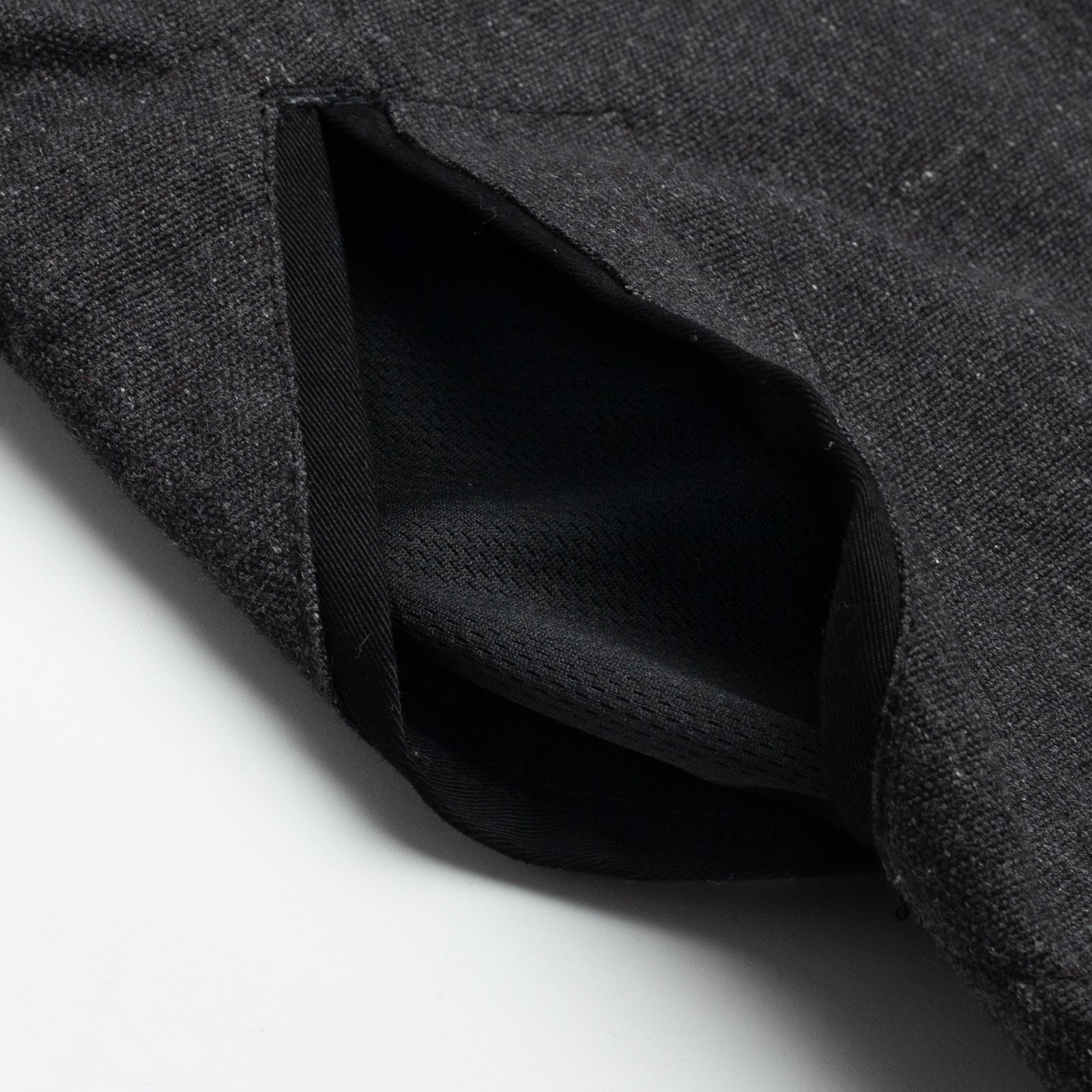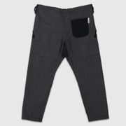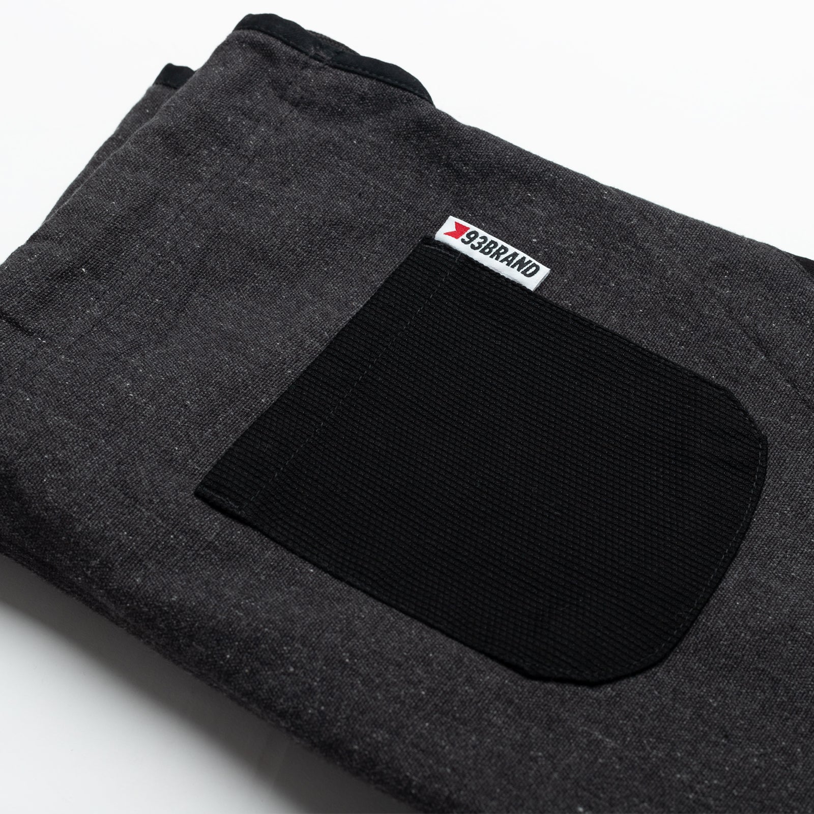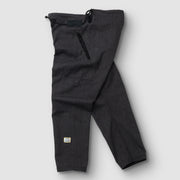 Since the traditional training Gi is intended for maximum mobility, the fit tends to be more boxy than you'd find in your wardrobe at home. So 93brand modified each size to make these pants more form-fitting. After taking into consideration which body type each Gi is suited for, the fit was adjusted by slimming the legs and tapering the fit toward the bottom cuff. While BJJ Gis typically have a roomy crotch for maximum guard play and takedowns, it's a bit much for casual use, and isn't particularly flattering on your booty. So the crotch has been elevated and the gusset was modified accordingly.