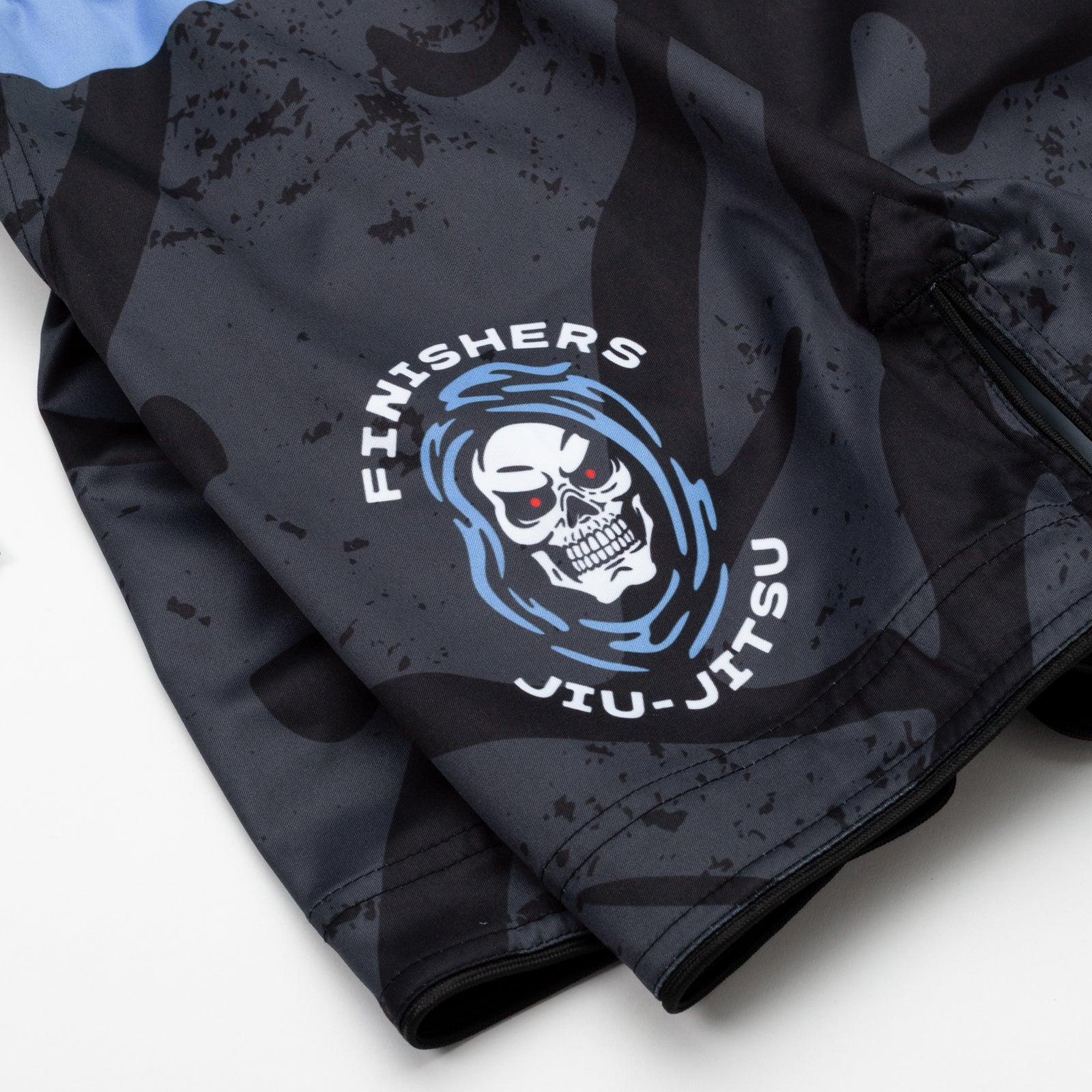 The Finishers “Grim Reaper” grappling shorts revive a crowd-favorite design. Made from a flexible polyester/spandex blend, they feature a 6.25" inseam that sits above the knee—perfect for unrestricted movement. The elastic waistband skips the Velcro for a clean, secure fit that stays comfortable through every roll.