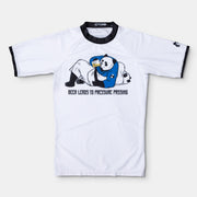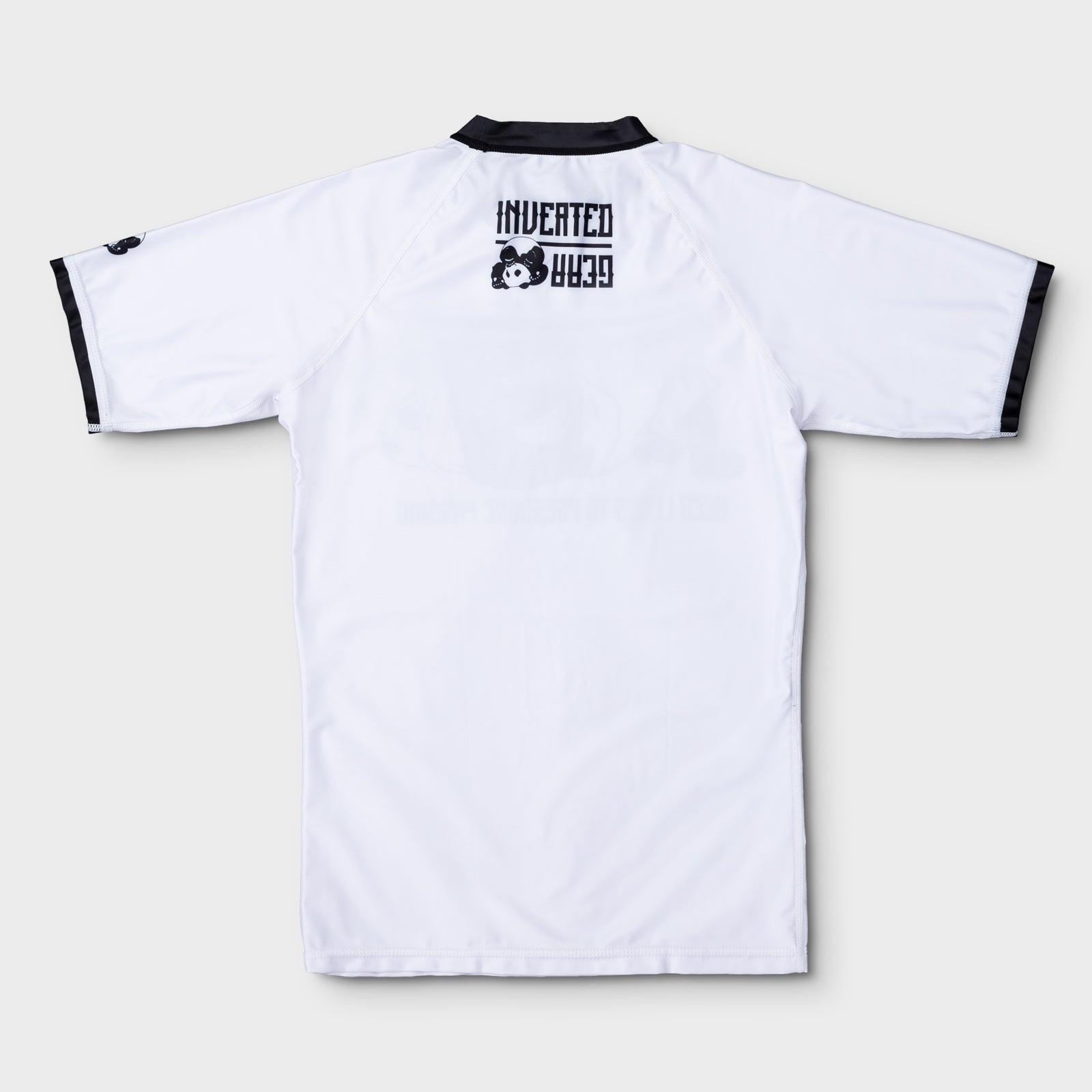 We have Inverted Gear's fan-favorite t-shirt design now available on a comfortable Nogi top. Featuring a lounging panda sipping a beer prominently on the front, this rash guard is perfect for BJJ enthusiasts who appreciate a bit of humor while maintaining top-notch quality.