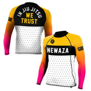 Newaza's nogi designs are not for the timid grappler. With looks like this long-sleeve "Trust" rashguard, you're sure to be one of the best-dressed jiujiteiros in the room!