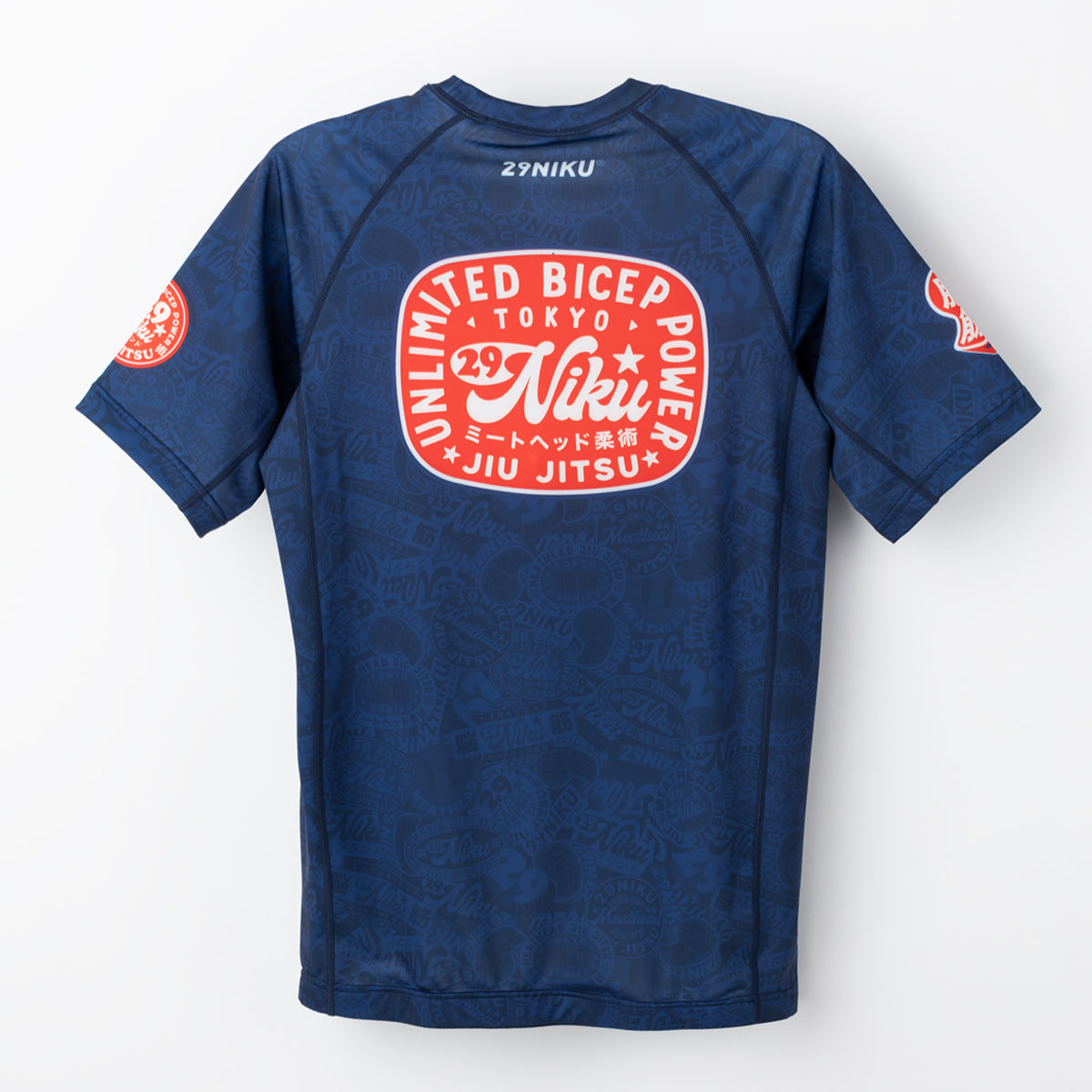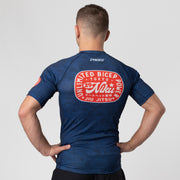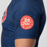 This 29Niku rash guard showcases some inspirational slogans and slick branding that are fully sublimated into the material. Made with a reliable polyester/elastane material and includes an internal rubber lining at the waist to keep the rash guard from riding up while training.