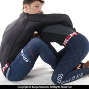As a followup to the popular Brasilia series (dark green and yellow), 93brand is kicking off the Americana series with dark blue and red. Featuring original patterns and designs fully sublimated into the soft premium fabric blend, guaranteeing that details remain crisp and detailed. The stretch material is built from a blend of polyester and spandex, designed to withstand the sort of stress and wear that even the toughest grappling routine can dish out. Train 7 days a week? No problem. Your Americana spats will get the job done (though in that case we'd recommend picking up more than one pair or investing in a lot of laundry detergent).
