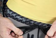 The jacquard waistband has enough elasticity to keep your spats securely around the waist, aided by an internal drawstring. Soft waistband interior and upper edge for added comfort. Sublimated DO MORE JIU JITSU design along inner waistband.