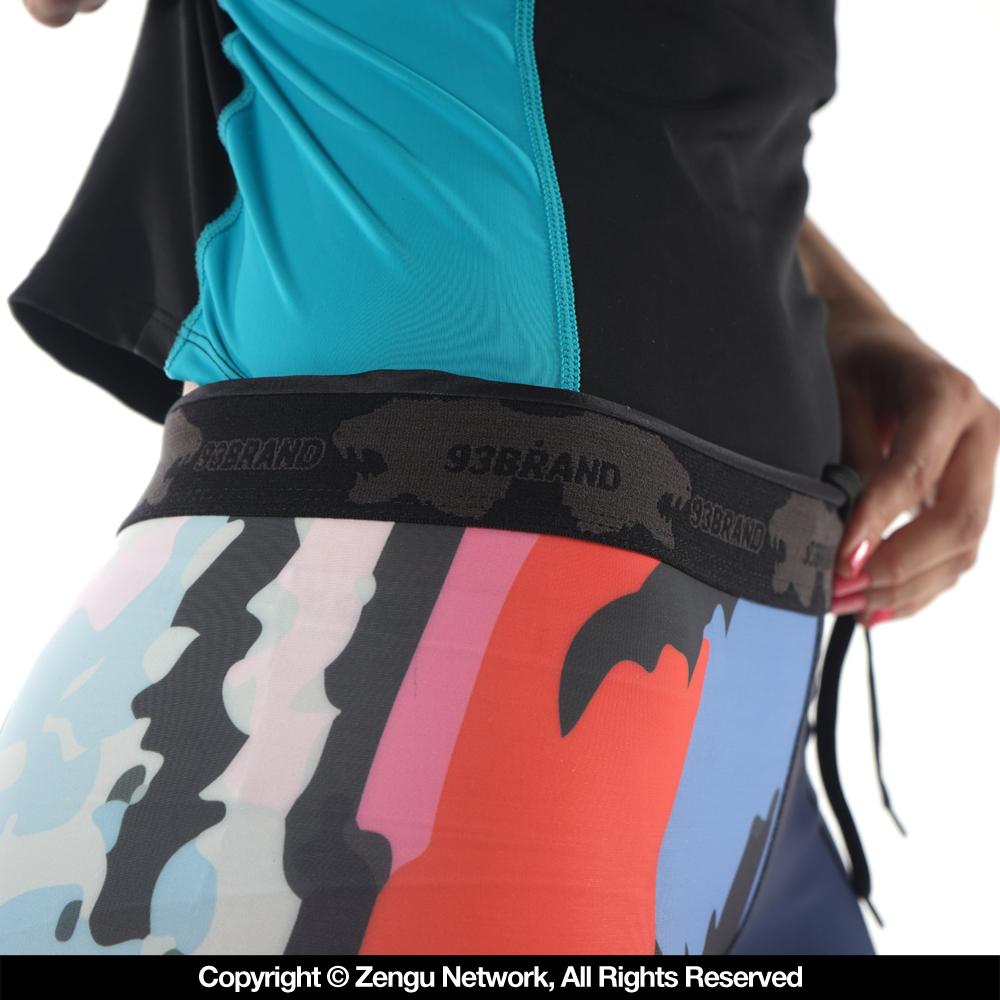 Assembled via a simple contoured/tapered 2-panel construction. Flexible flatlock stitching. Equipped with 93brand's usual jacquard waistband, but with special edition graphics woven through the band. Interior waist and upper edge are lined with soft poly/spandex to prevent the jacquard from digging into your gut/sides. Fit is fine-tuned via internal drawstring with reinforced eyelets.
