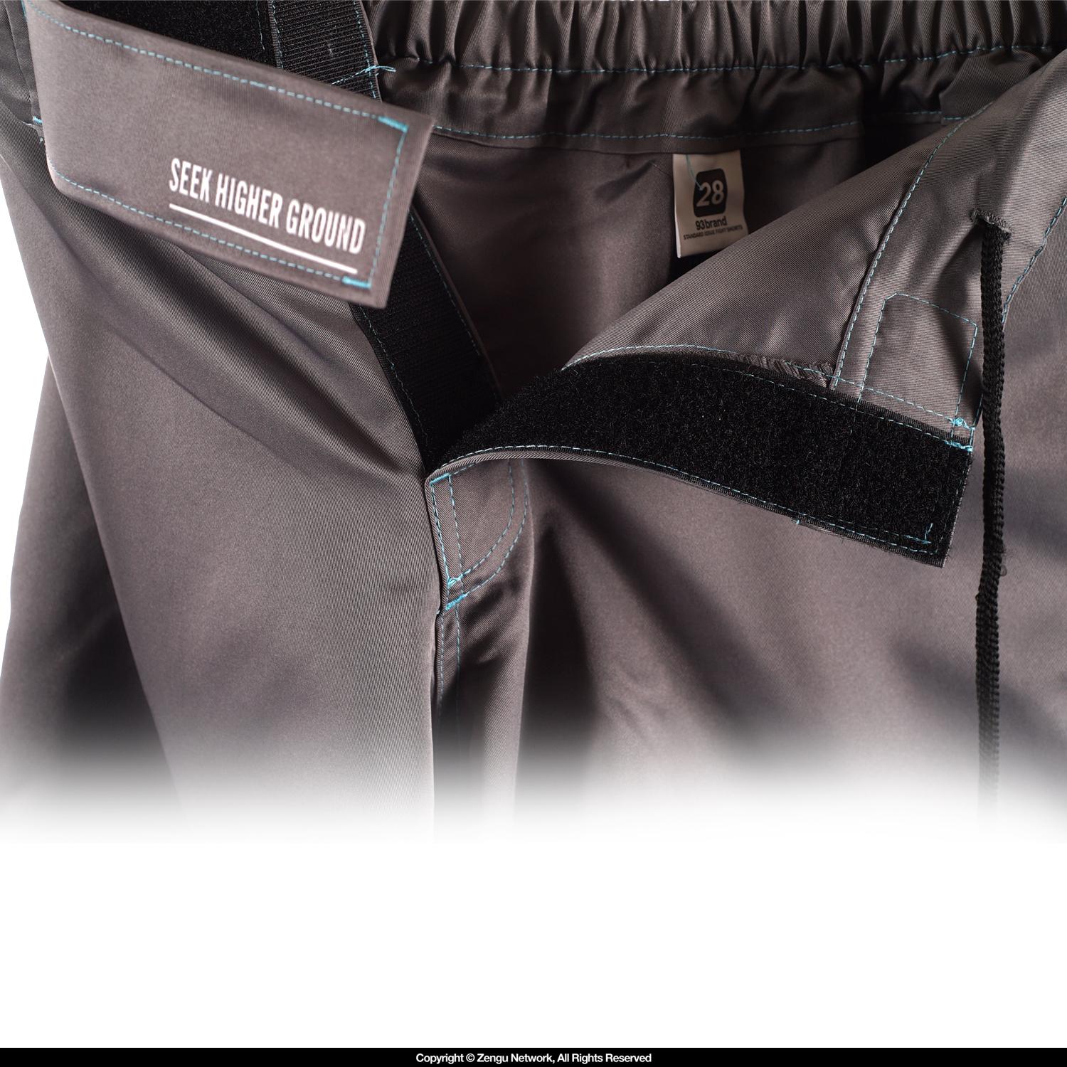 Wide waistband with elastic core throughout the rear portion only, not too tight but just enough to make your shorts more accommodating to fluctuating weights. Aided by an internal drawstring.