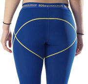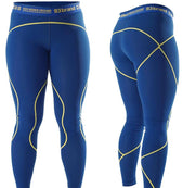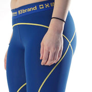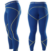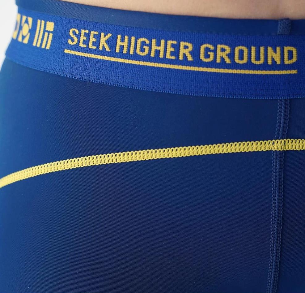 Using a blended fabric (88% nylon/12% spandex) to achieve a flexible fit throughout the body, with a mesh crotch panel to add ventilation. Bright flatlock stitching offers a nice contrast against the deep blue finish, securely keeping each panel together for a form-fitting compression fit.