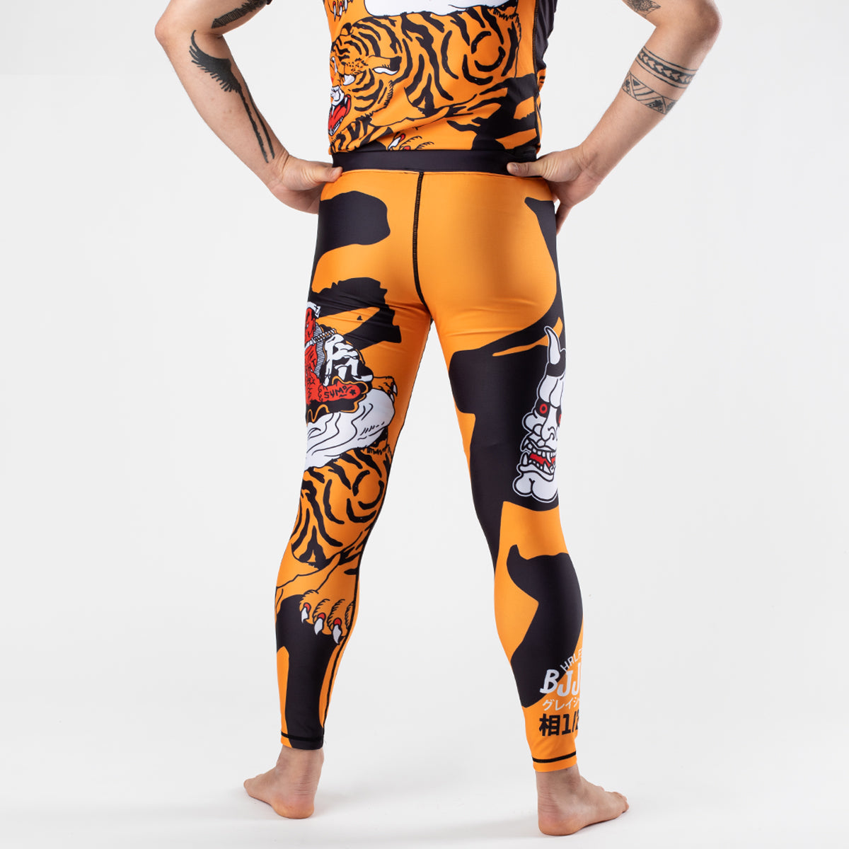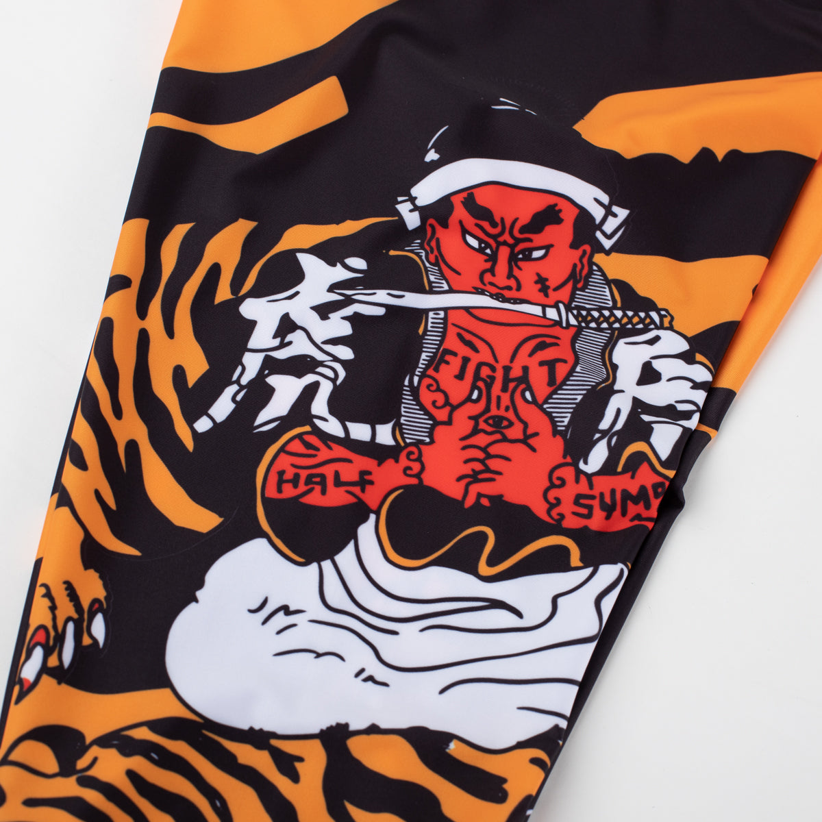 The "Year of the Tiger" spats feature exclusive designs from Half Sumo! A limited edition collab between Half Sumo and BJJHQ. Featuring sublimated graphics that will never fade. Built from a moisture-wicking poly/spandex blend. Includes an internal drawstring to fine tune the fit.
