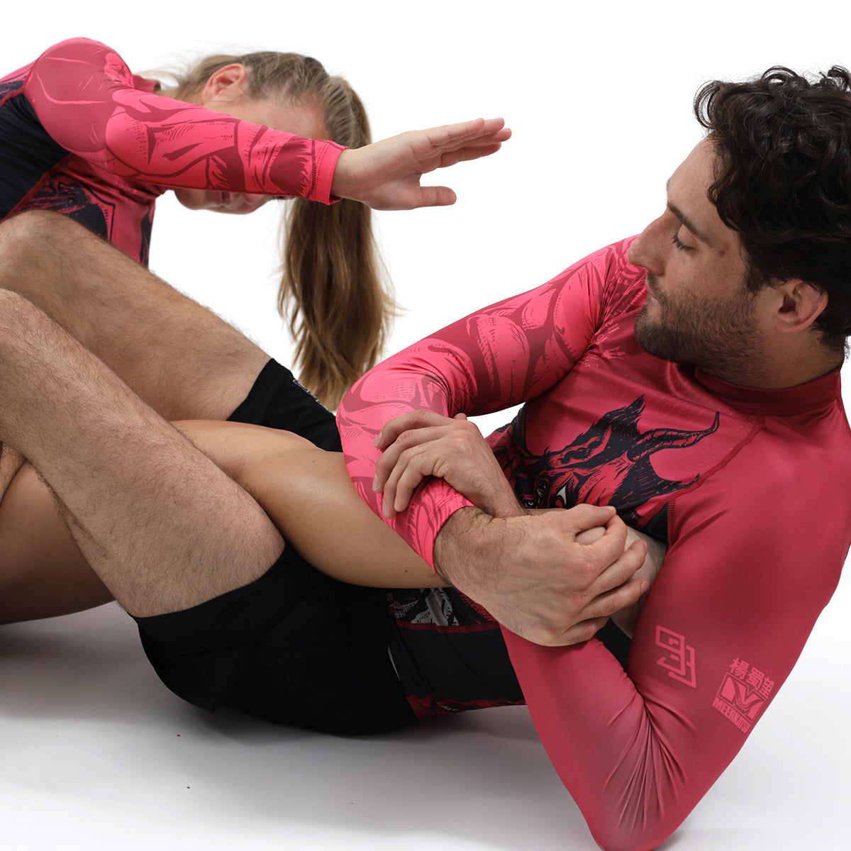 Pay tribute to the unholy art of lower body twisting joint locks (and repent for the subsequent ligament destruction). Updated original illustration by Meerkatsu. Our newer rashguard cut is much improved with a smoother overall fit and less bunching of material, along with a more matte-like finish.