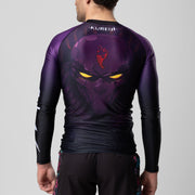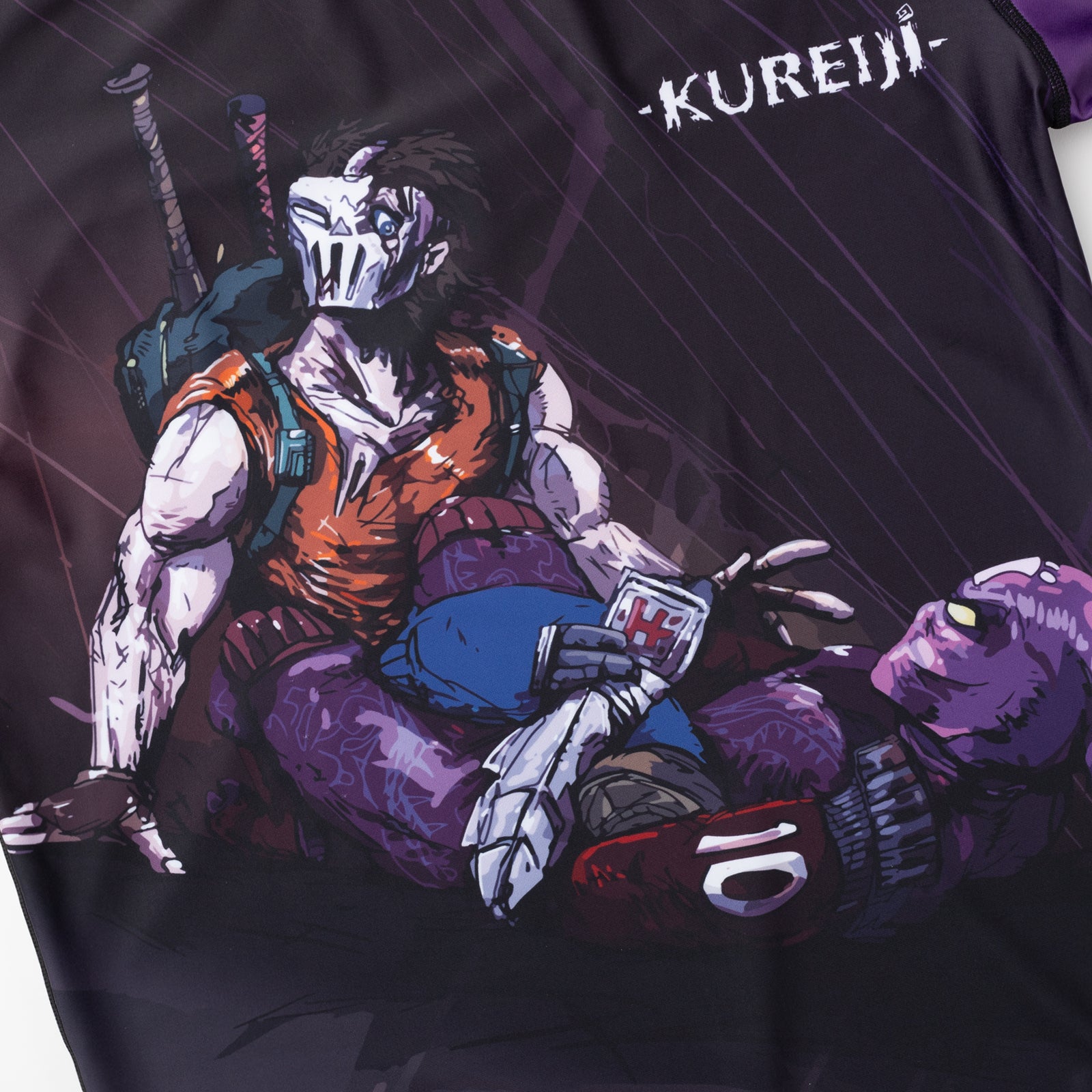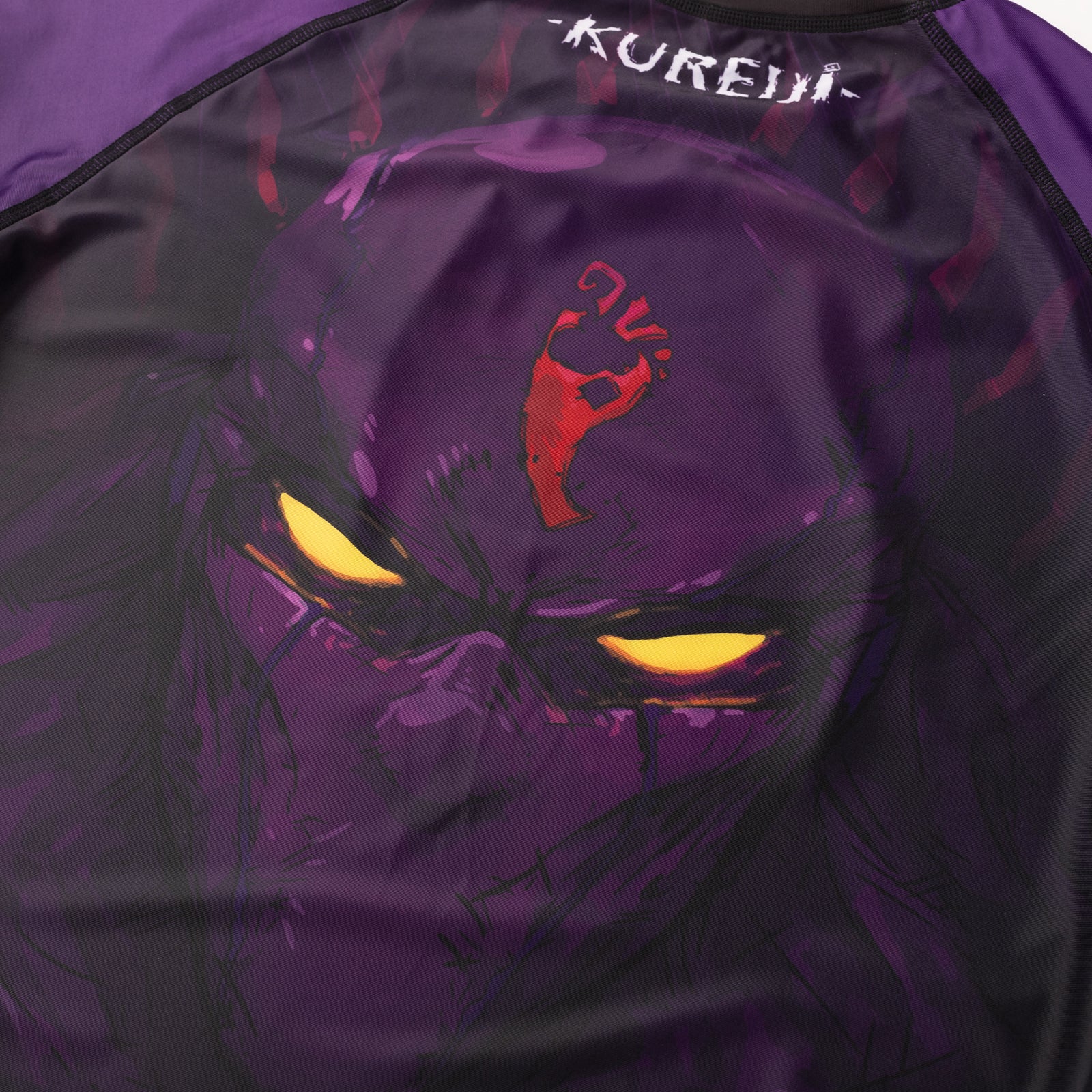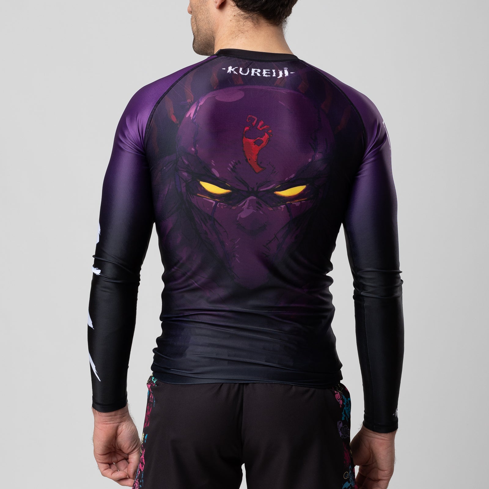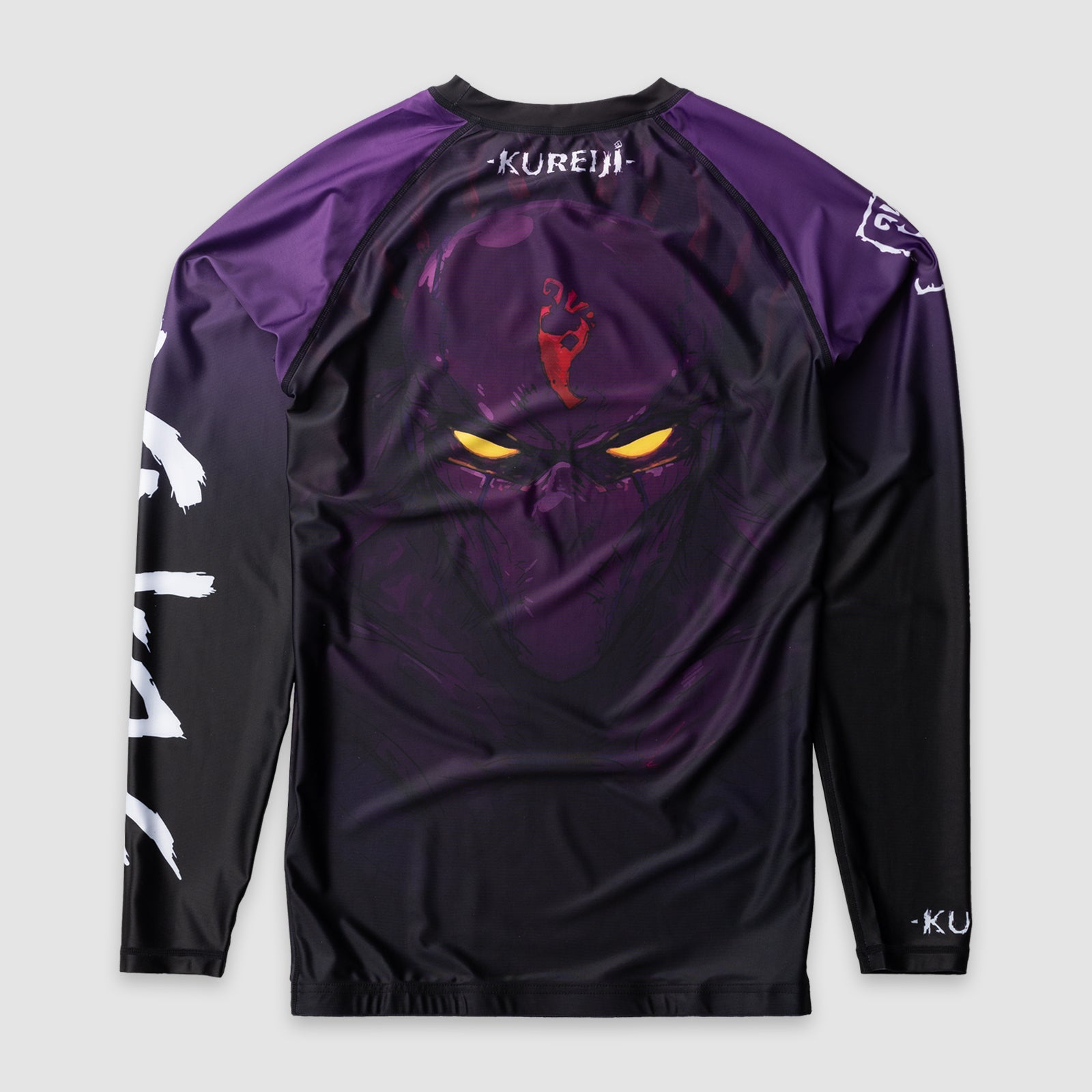 The "Foot Lock Klan" rash guard from Kureiji is made with a classic poly/Spandex blend and strong flexible seams. The internal silicon lining at the waist prevents the rash guard from riding up.