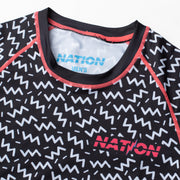 The Nation Athletic "90s Babies V2" rash guard features bold throwback artwork. A multi-panel construction and compression fit that's ideal for nogi grappling.