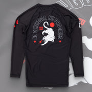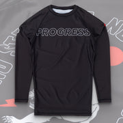 The Panther Rash Guard features one of Progress Jiu Jitsu's most popular designs. Fully sublimated panther graphic and branding throughout, including unique "Progress" text extending off the front panel. Made with a classic poly/Spandex blend and a snug compression fit.