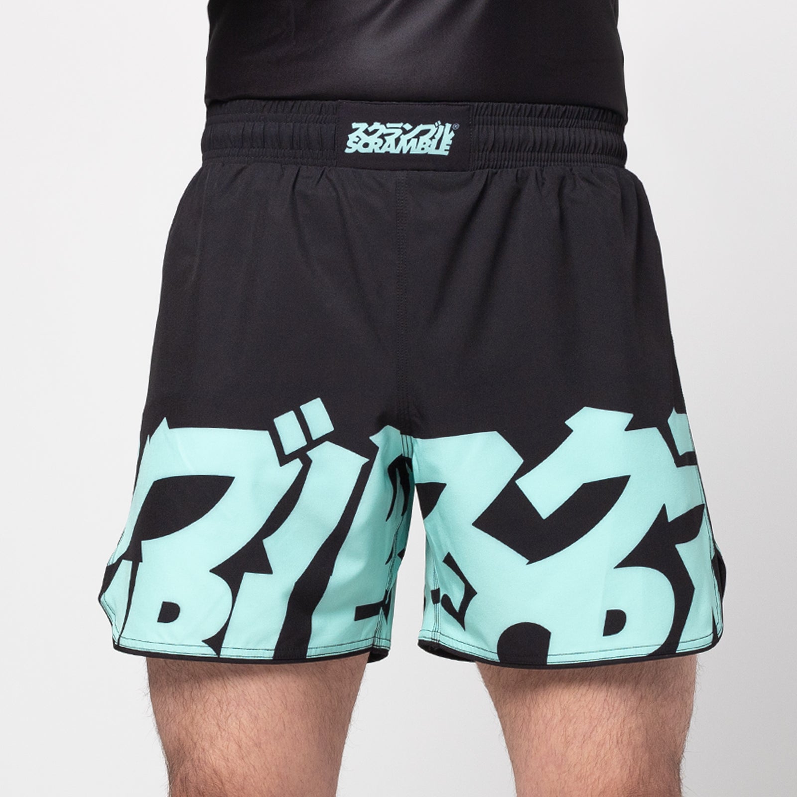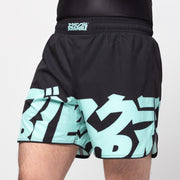 These nogi shorts feature bold Scramble logos along each leg in a unique seafoam green colorway. Constructed with a super light poly/spandex blend and flexible flatlock stitching.