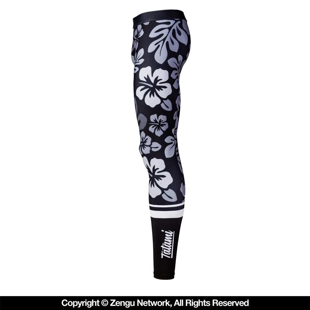 The Hibiscus Spats features fully sublimated floral artwork with a gradient background and original typography down the shin. A monochrome-esque color scheme of black/grey/white gives that classy, refined finish.