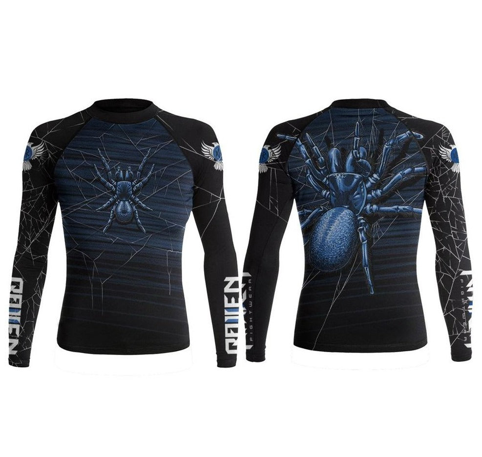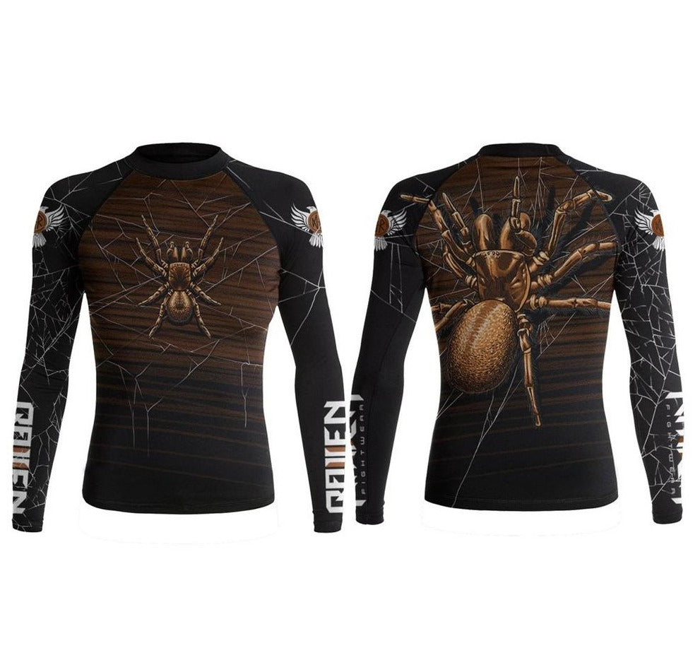 Gorgeously sublimated colors and original graphics. . . The "Funnel Web" Rashguard by Raven. Enough said. Take a look and pick your size, because this is one slick nogi rashie! IBJJF approved.