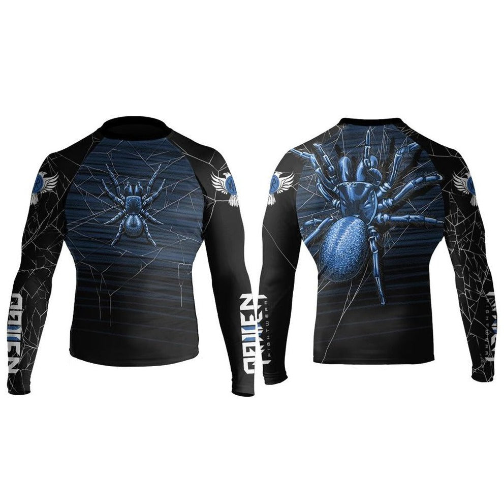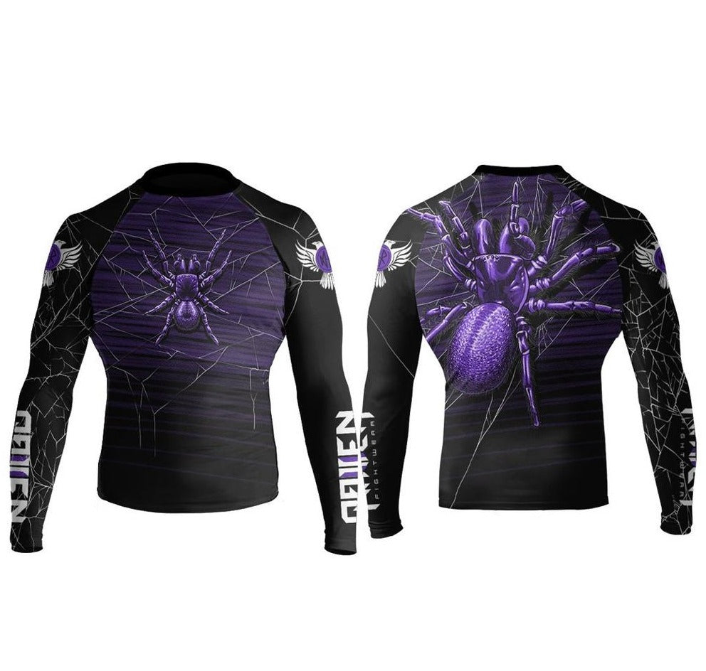 Gorgeously sublimated colors and original graphics. . . The "Funnel Web" Rashguard by Raven. Enough said. Take a look and pick your size, because this is one slick nogi rashie! IBJJF approved.