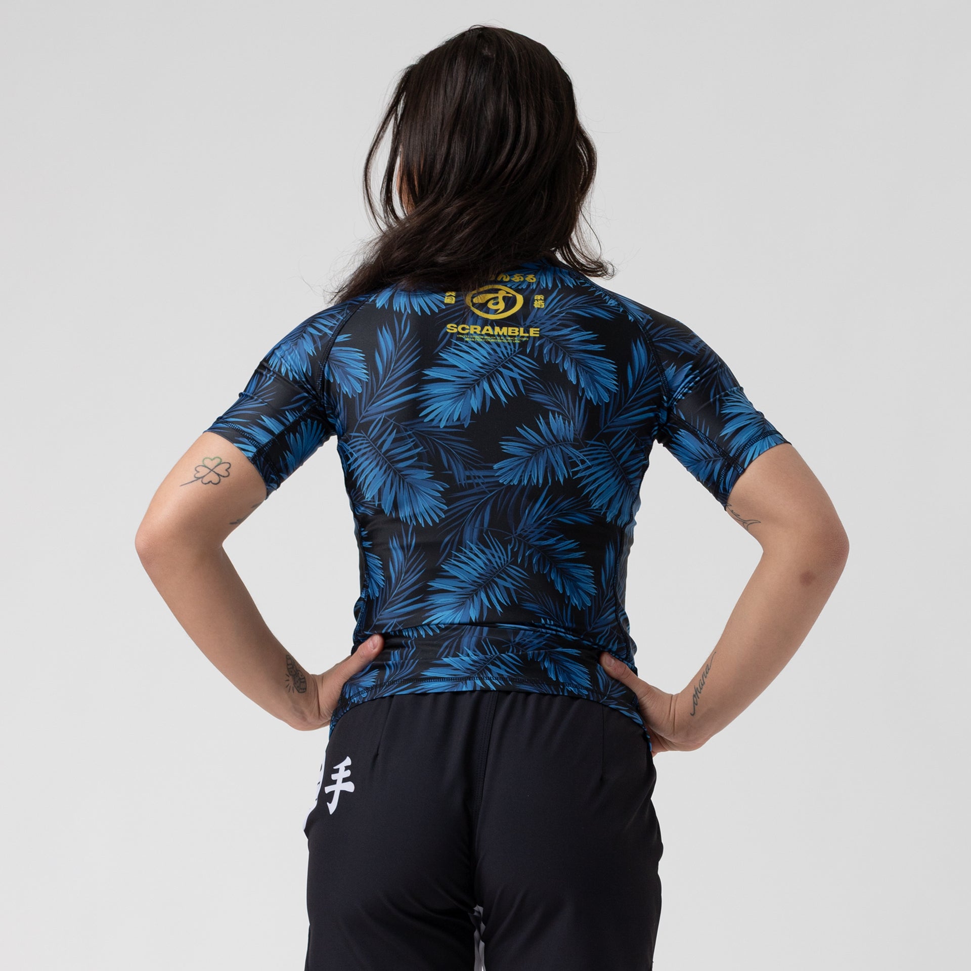 For those who appreciate bold floral patterns and Nogi gear from a reliable name in the Jiu Jitsu community, Scramble's Indigo Camo rash guard is an exceptional option.  The gold contrasting branding is fully sublimated ensuring a long lasting, vibrant look.  It has a good compression fit that's ideal for all your Nogi sessions.