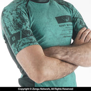 Flexible flatlock stitching. Detailed texture pattern on the front/back and shoulder panels. Solid underarm panels. Generous torso length for taller or more scrambly grapplers. Sublimated neck label (no itchy tags or screen prints).