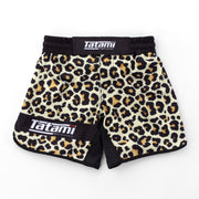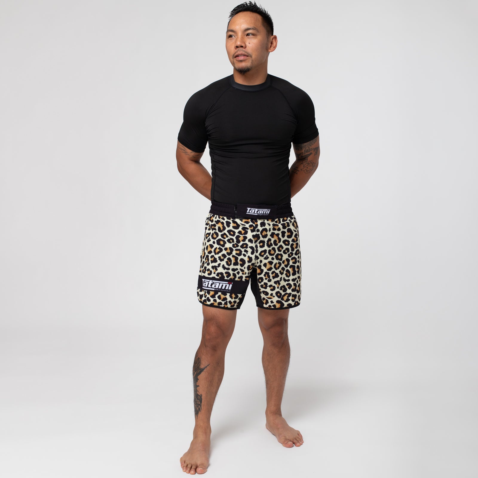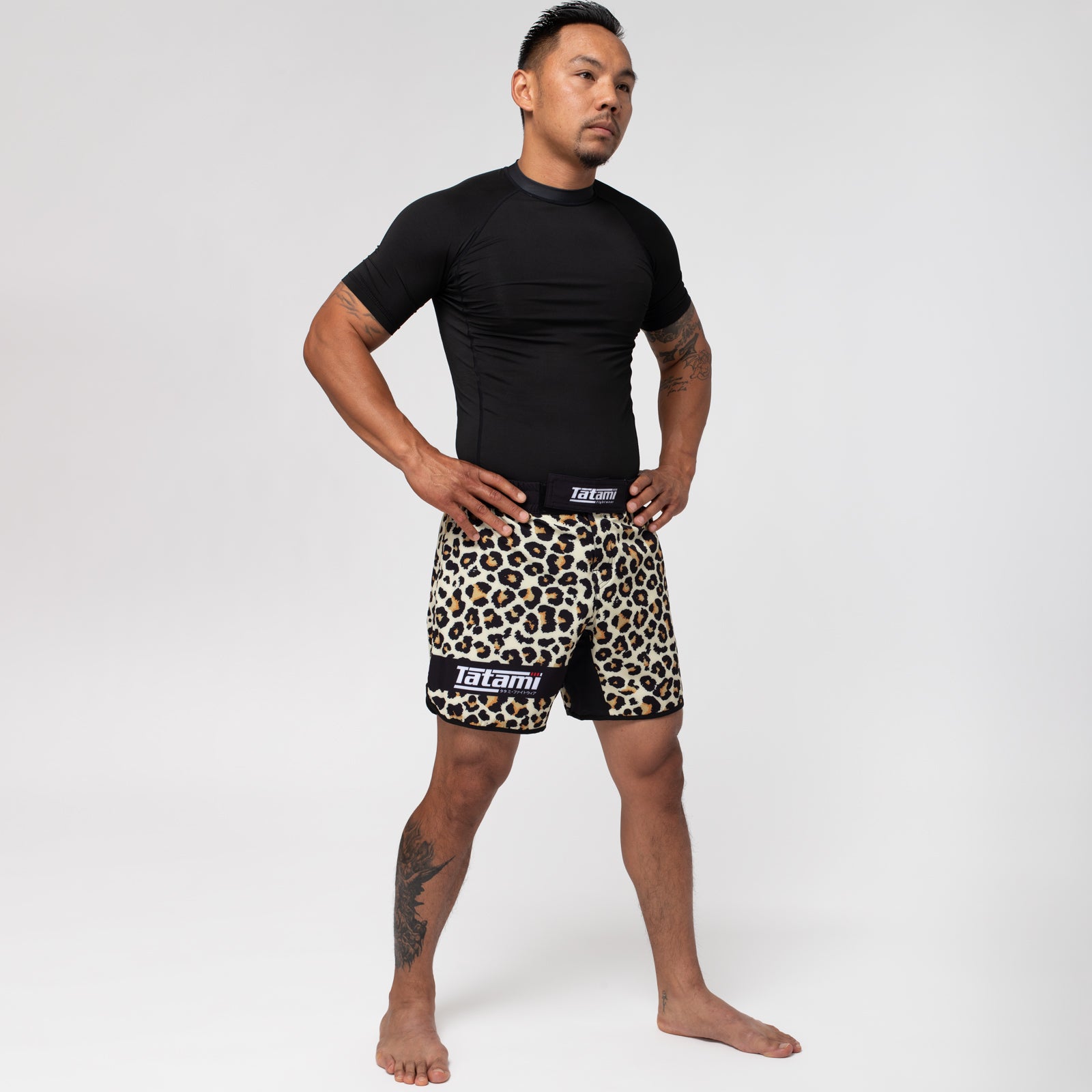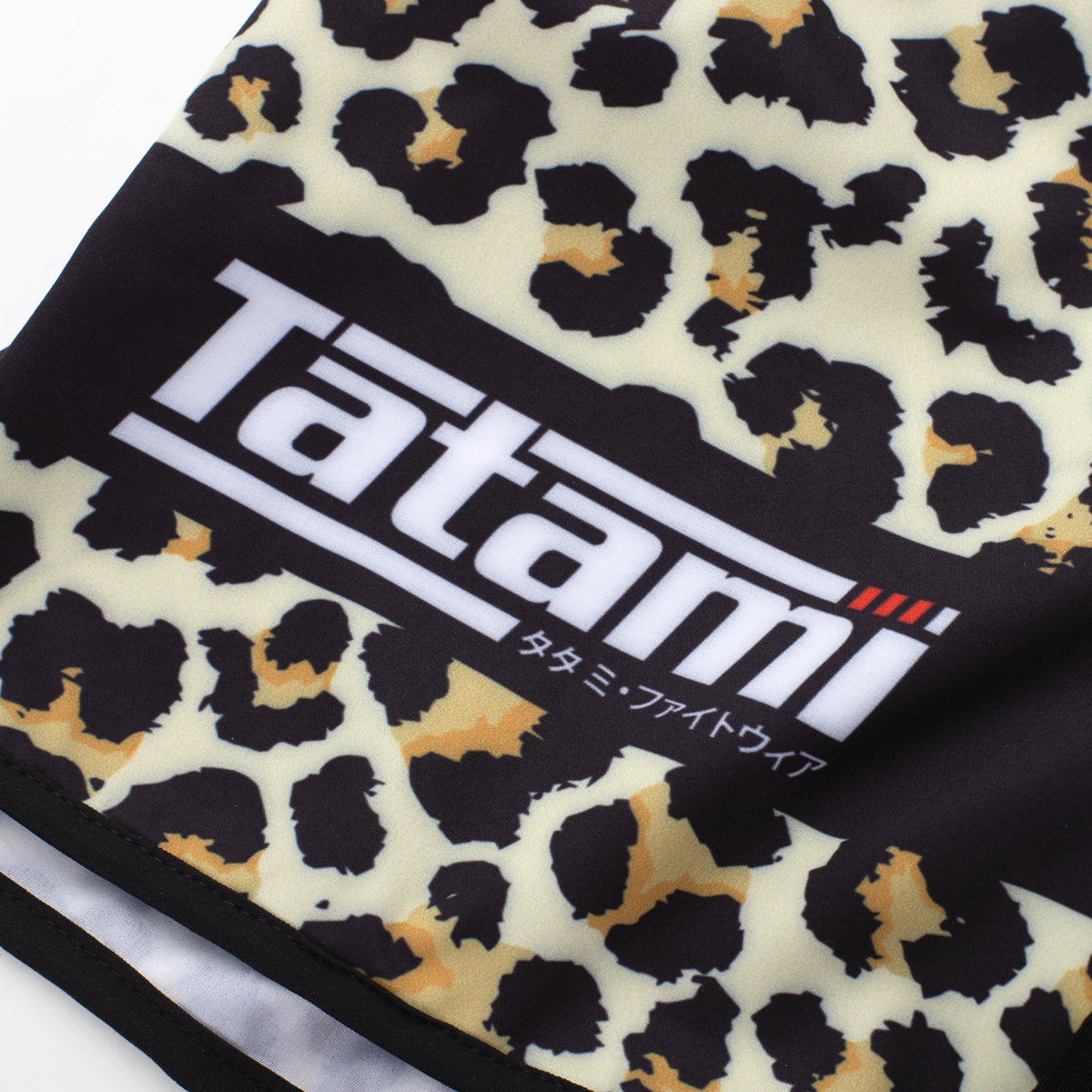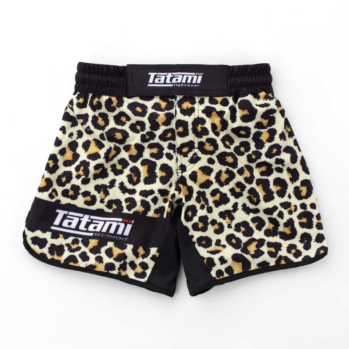 The Tatami Recharge fight shorts are designed with a leopard print and black & white logos. They feature a contrasting black gusset and Tatami logos on the waistband & leg. The elasticated waistband comes with a hidden adjustable drawstring and velcro fastening for a secure fit.