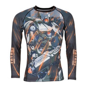 Introducing new NOGI apparel from Tatami. This particular collection features futuristic robotic warriors designed by artist Supervixen. Made from a polyester-spandex blend, the fully sublimated artwork ensures it will not crack, peel or fade. The high quality sublimated material combines with a unique silicon waist band to ensure the rash guard stays in place and maximises comfort.