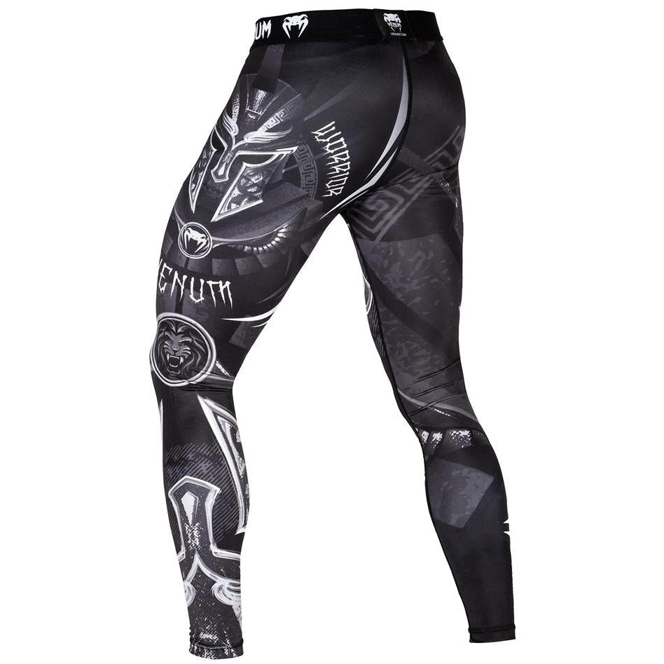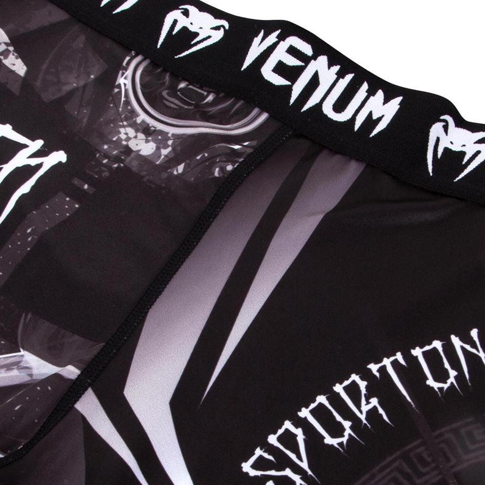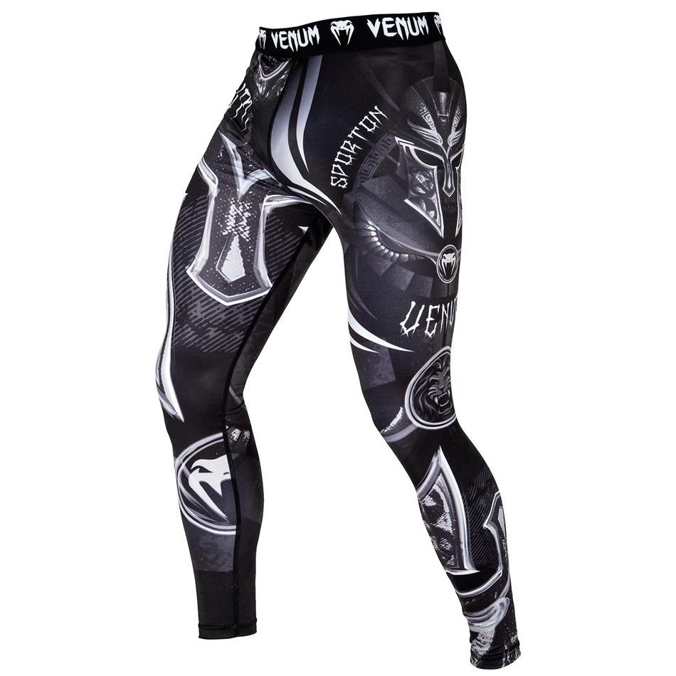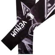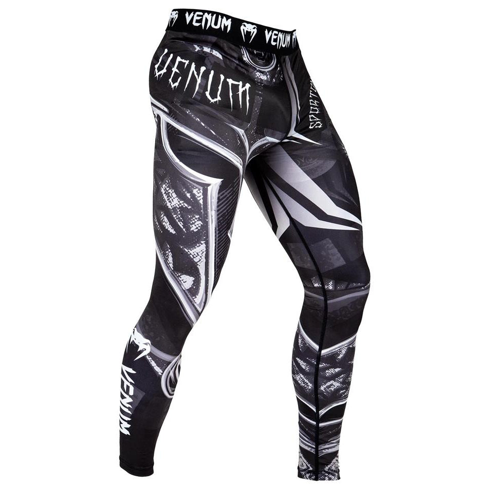 Introducing the new "Gladiator" spats from Venum. Featuring their always impressive graphic designs, every inch of which is fully sublimated into the fabric. These spats are a soft 87% Polyester - 13% Spandex material. Flexible elastic waistband with repeating Venum logos. 4 way stretch fabric.