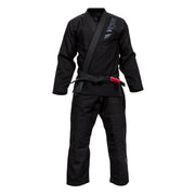 Reinforcement paneling and strong stitching make the "Elite" a Jiu Jitsu uniform that can stand up to daily rolling and/or the most rigorous of competition schedules. Featuring a sublimated inner yoke panel with a repeat graphic pattern that contrasts nicely against the all black cotton. Equipped with multiple drawstring loops and a round stretch cord that match the black/black trim throughout the rest of this handsome kimono.