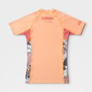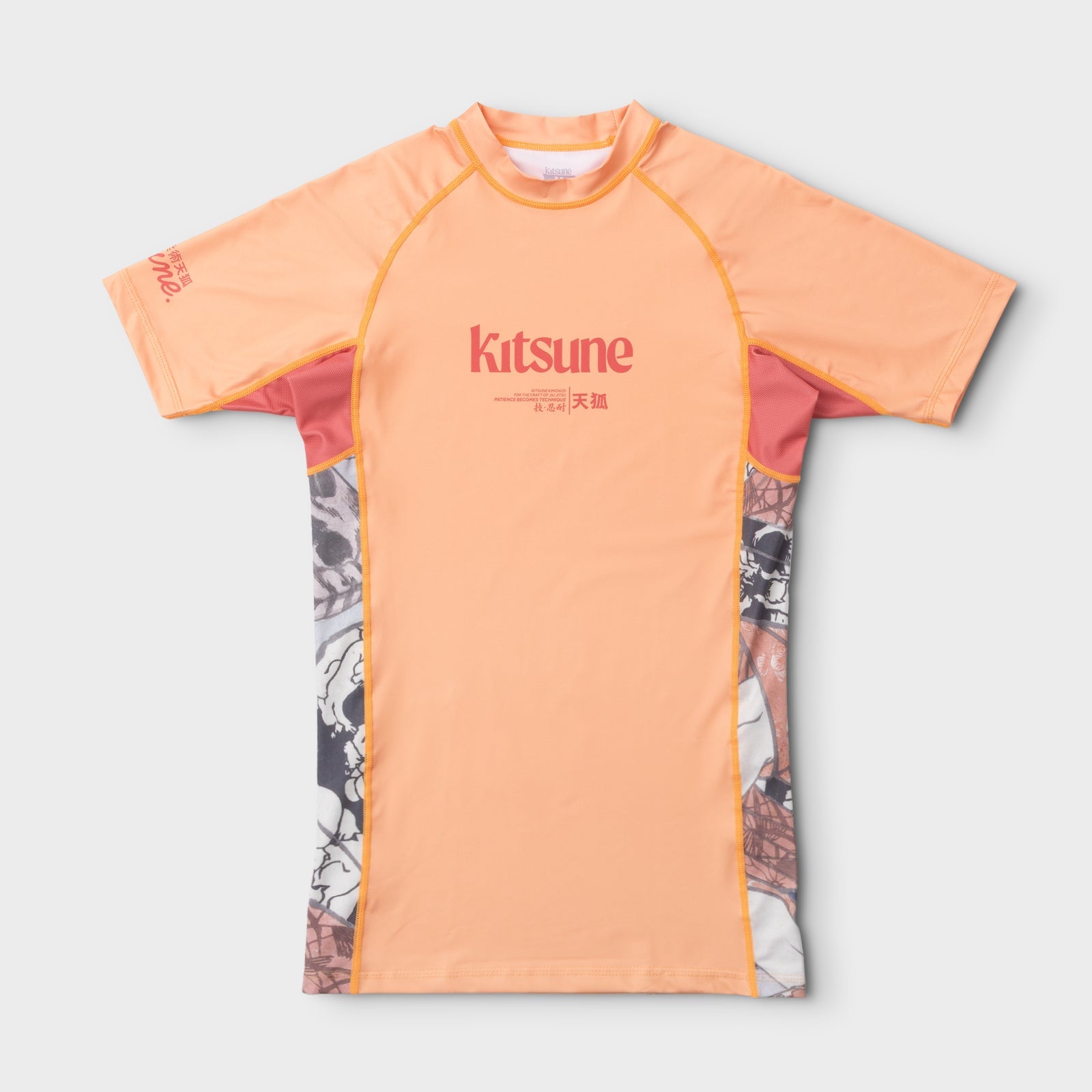 The new 'Gosuke' rash guard is made with a light peach color palette and refreshed ukiyo-e-inspired detailing.  Built for durability with flatlock stitching and enhanced with breathable underarm panels to regulate heat while you train.  This rash guard has a snug fit, so if you're in between sizes we'd recommend sizing up.