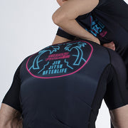 Assembled with flexible flatlock stitching and a generous torso length to prevent riding up while rolling. The fully sublimated artwork will never fade or peel. Built from a strong polyester/spandex blend (softer and more substantial than the nylon blend used for the plainer "Standard Issue" compression series). Men's cut features added torso length. Women's cut features a tapered waist, slightly narrower shoulders, and slightly shorter sleeves.
