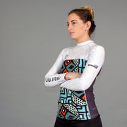 Something a little more colorful for your BJJ wardrobe. New long-sleeve rashie featuring hand-painted artwork from our collaboration with NY textile artist Jamie Kimak.