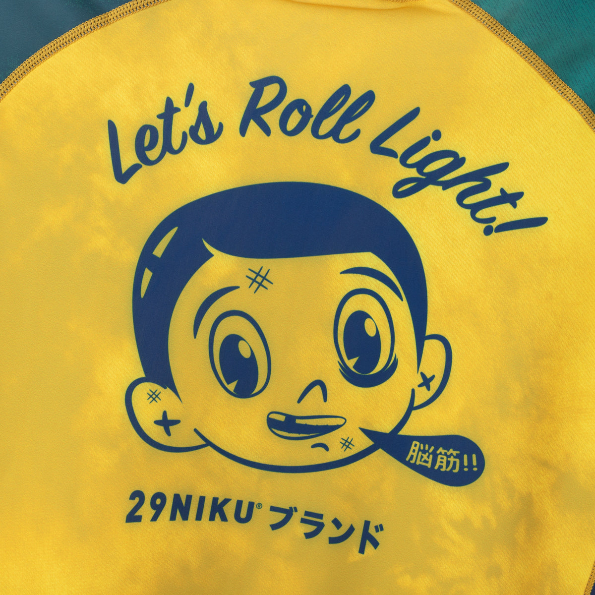 29Niku is back with a new drop of their popular "Let's Roll Light" design. This particular version is distinct with a bold vintage yellow color as it's base. The classic "Let's Roll Light" artwork is found on the front, back, and sleeves along with 29Niku branding and kanji throughout.