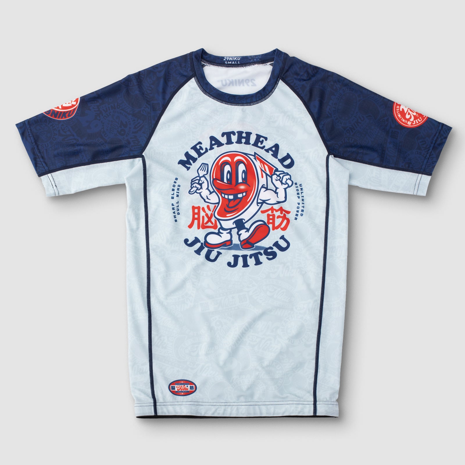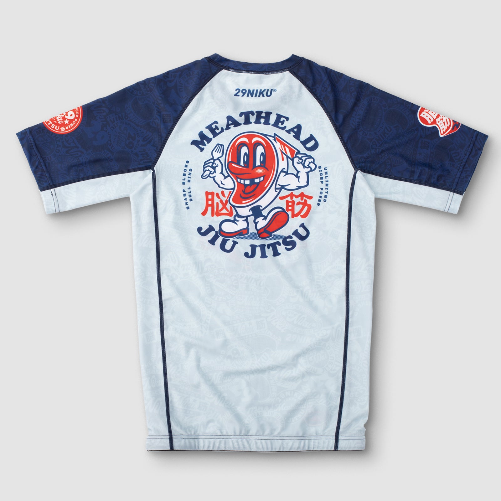 Check out our latest offering: the 29Niku short sleeve rash guard featuring the popular Meathead graphic. Designed for Nogi Jiu Jitsu, this comfortable rash guard showcases stunning sublimated artwork and stylish 29Niku branding throughout.