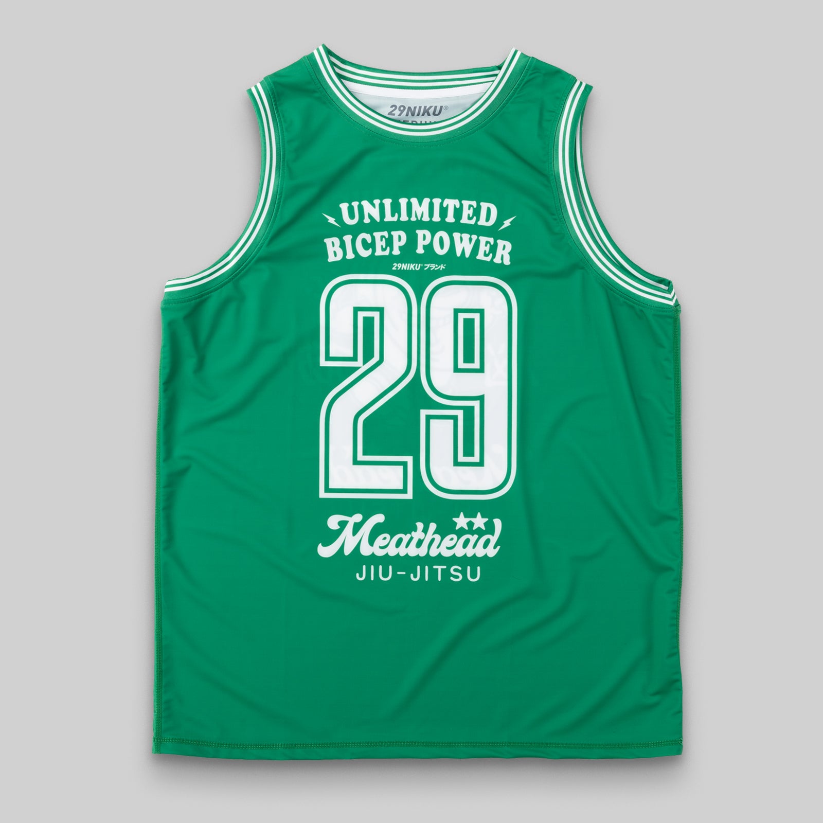 29Niku's popular meathead graphic is now on a unique sleeveless rash guard! This nogi top is design for no gi Jiu Jitsu, under the gi, MMA or grappling but it will also work excellent for other sports.