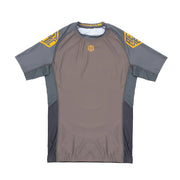 Crafted from a newly developed fabric that’s stretchy, breathable, and exceptionally comfortable, this rash guard pairs earthy tones with sharp tangerine accents. Extended mesh panels along the underarms enhance airflow and help regulate temperature during your toughest rolls.