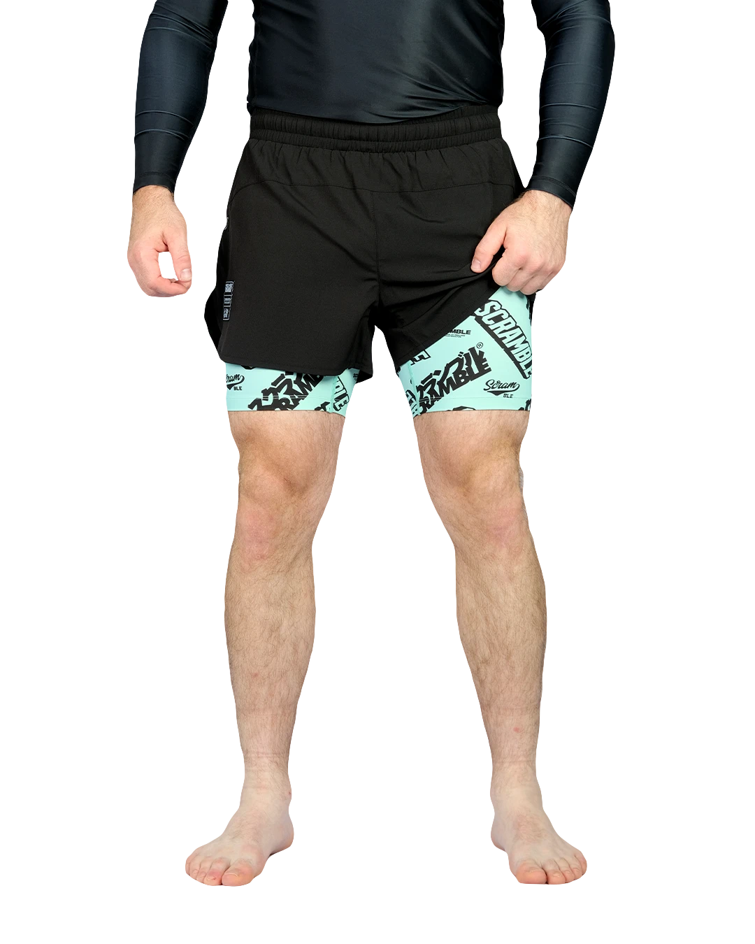 Designed for multi-discipline training, Scramble’s Combination shorts combine an inner Lycra compression layer with a lightweight, high-cut outer layer to maximize movement and comfort. They’re made from a premium polyester/spandex blend and have reinforced stitching.